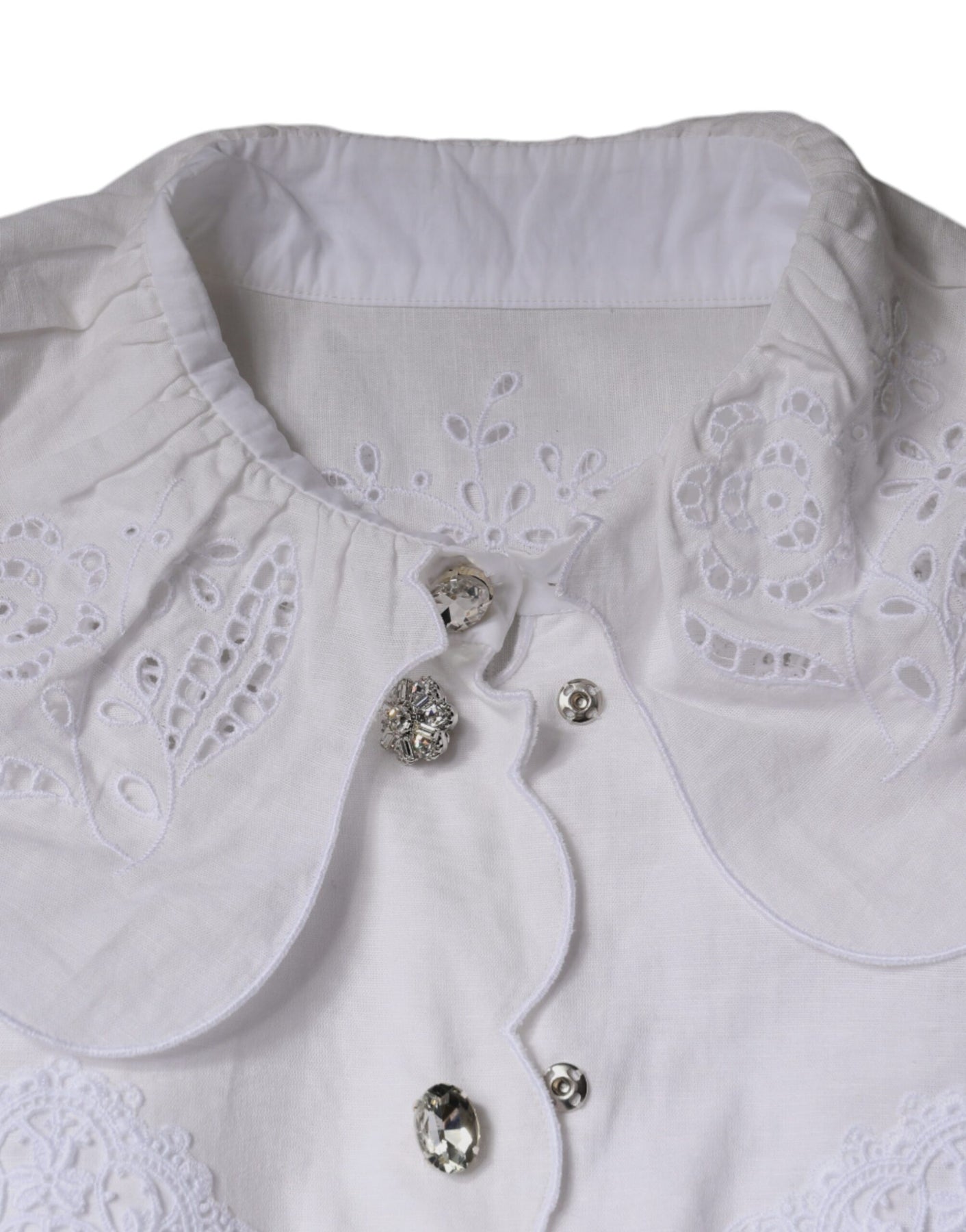 Dolce & Gabbana White Cotton Lace Trim Collared Blouse Top