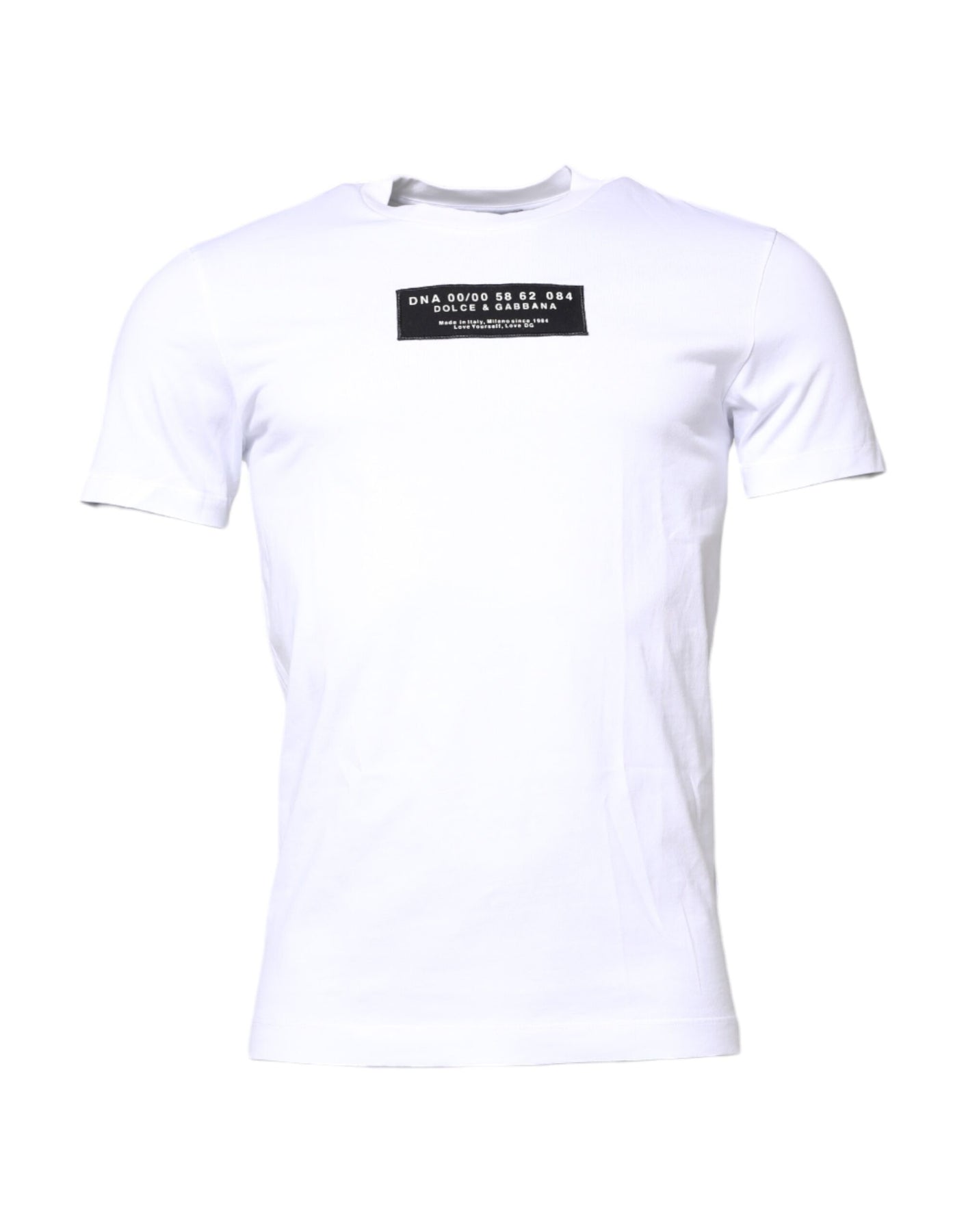 Dolce & Gabbana White Cotton Logo Patch Crew Neck T-shirt