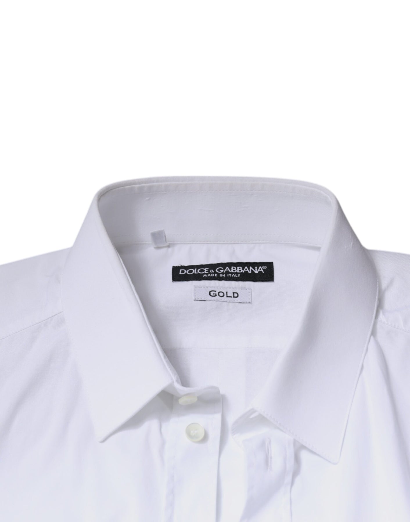 Dolce & Gabbana White Cotton Long Sleeve GOLD Dress Shirt