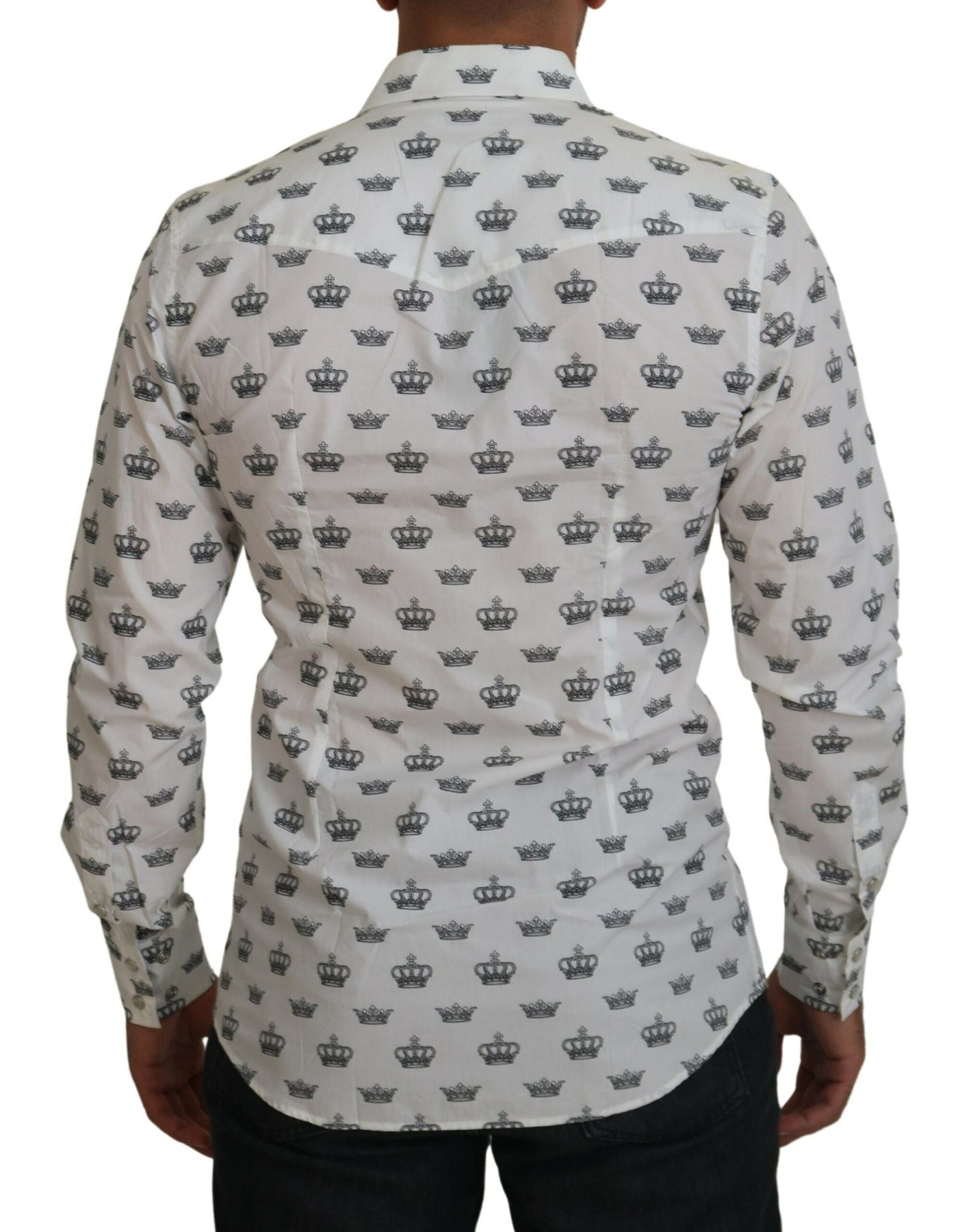Dolce & Gabbana White Crown Print Slim Fit Cotton Shirt