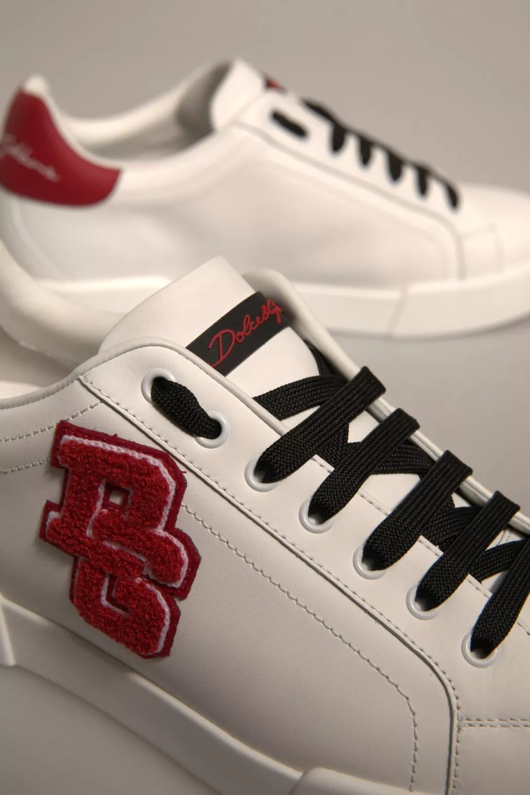 Dolce & Gabbana White Leather DG Logo Low Top Sneakers Shoes