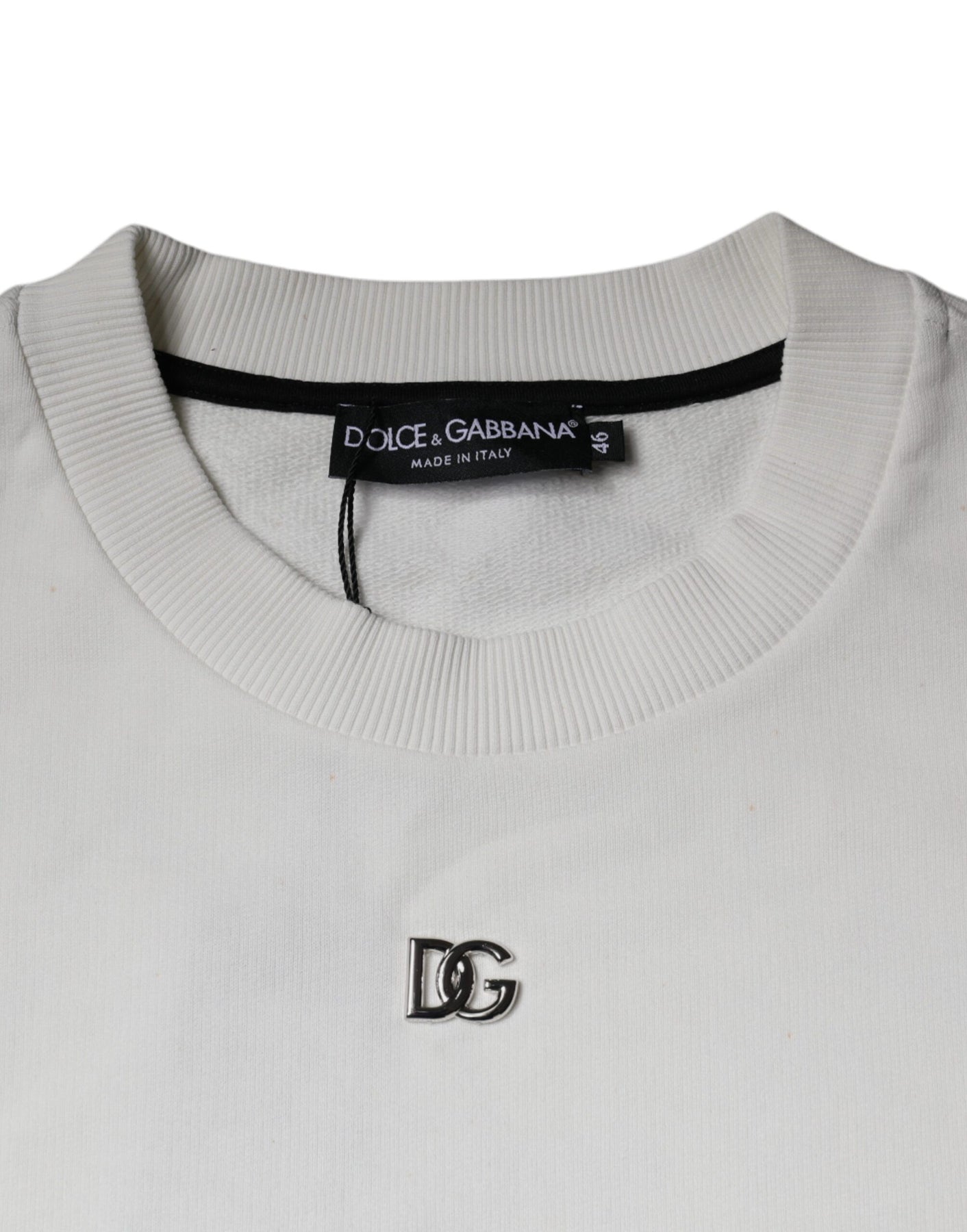 Dolce & Gabbana White Logo Cotton Crew Neck Pullover Sweater