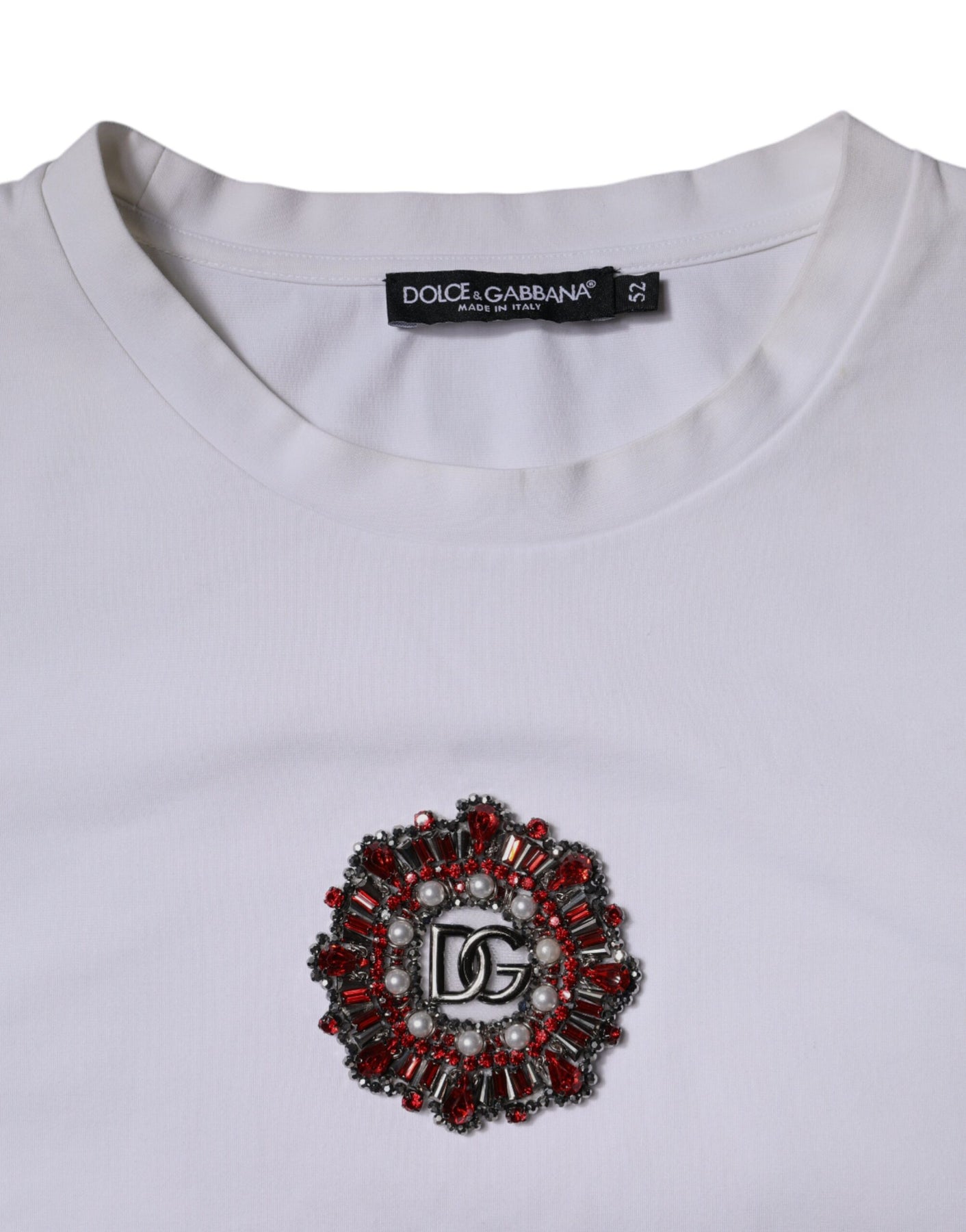 Dolce & Gabbana White Logo Embellished Crew Neck T-shirt