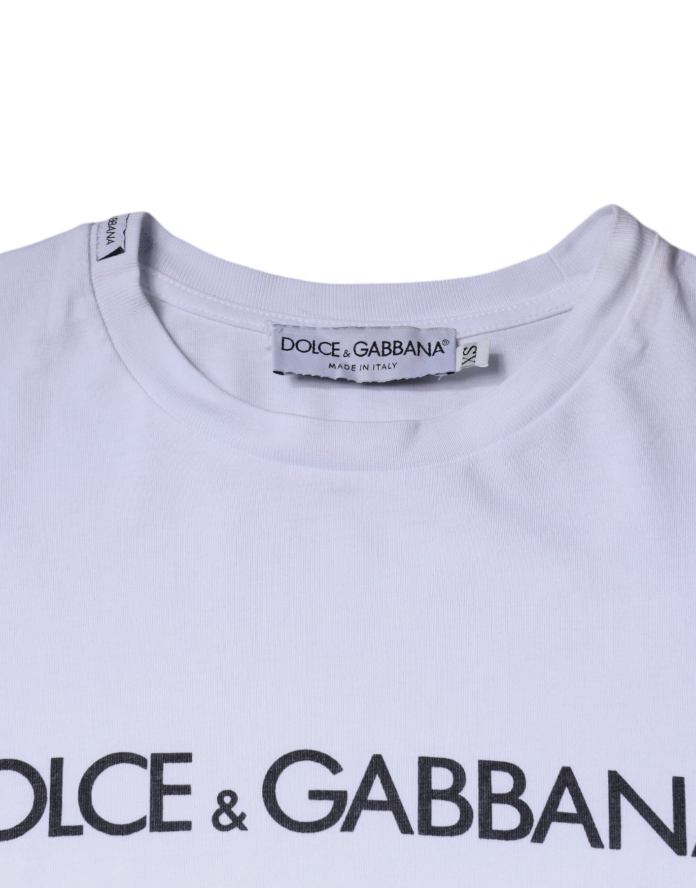 Dolce & Gabbana White Logo Print Cotton Crew Neck T-shirt