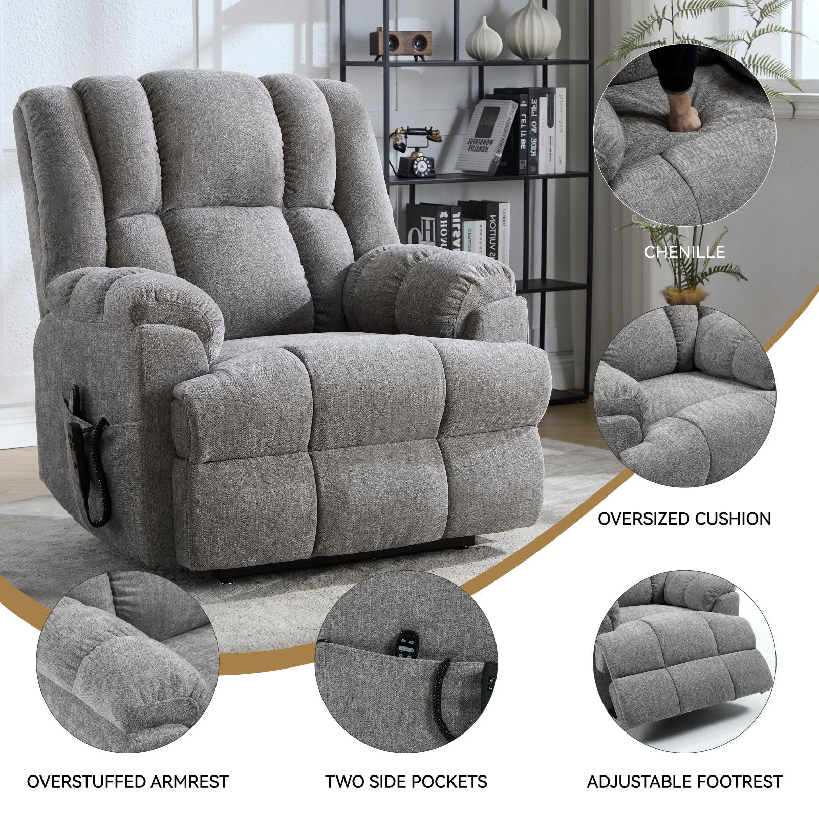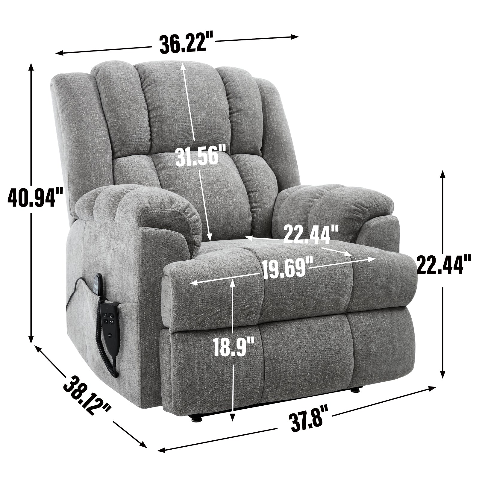 Dual Motor Heat Massage Infinite Position Up to 350 LBS Electric Power Lift Recliners with Power-Remote, Medium-firm and Heavy Duty, Light Grey