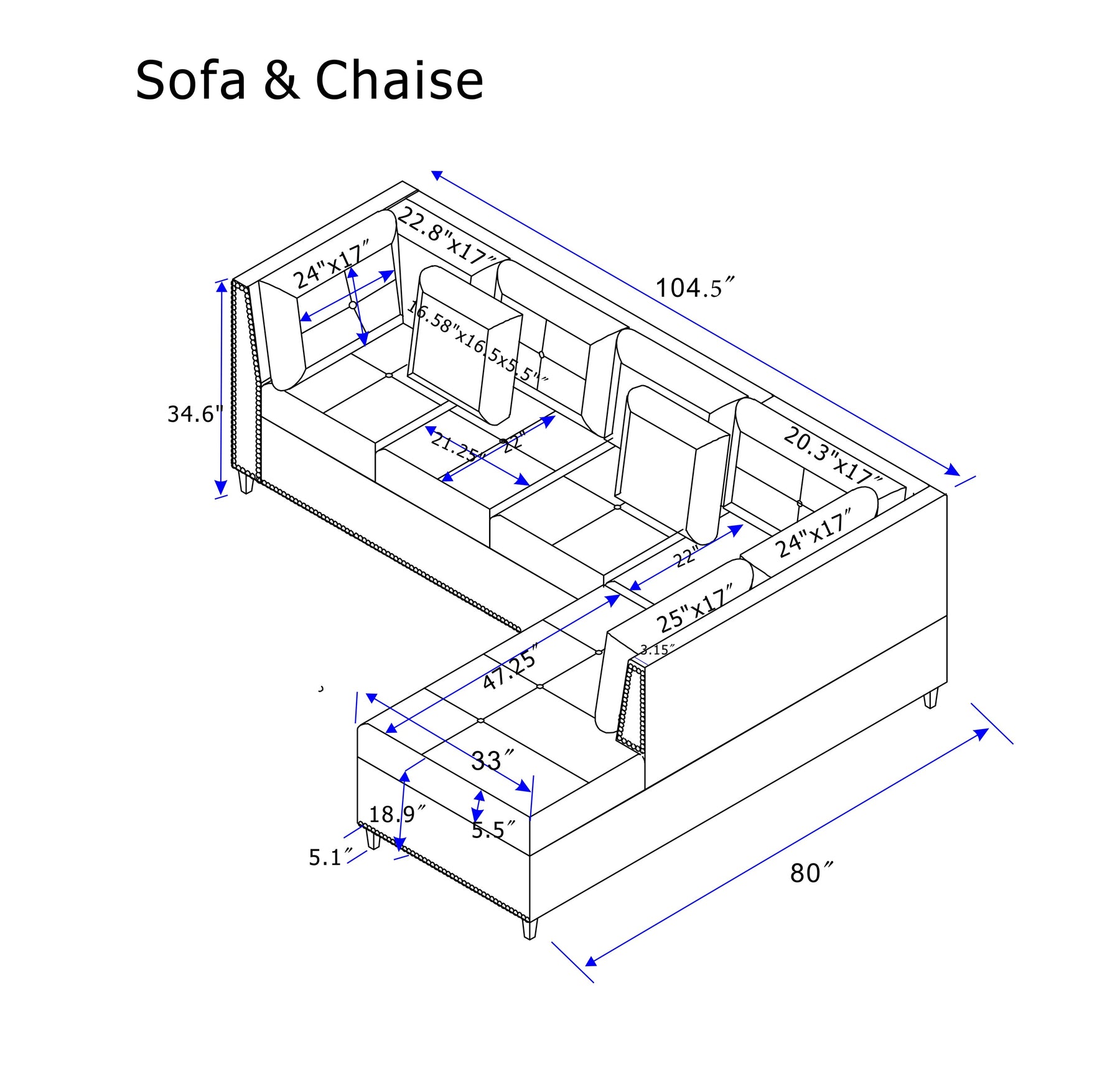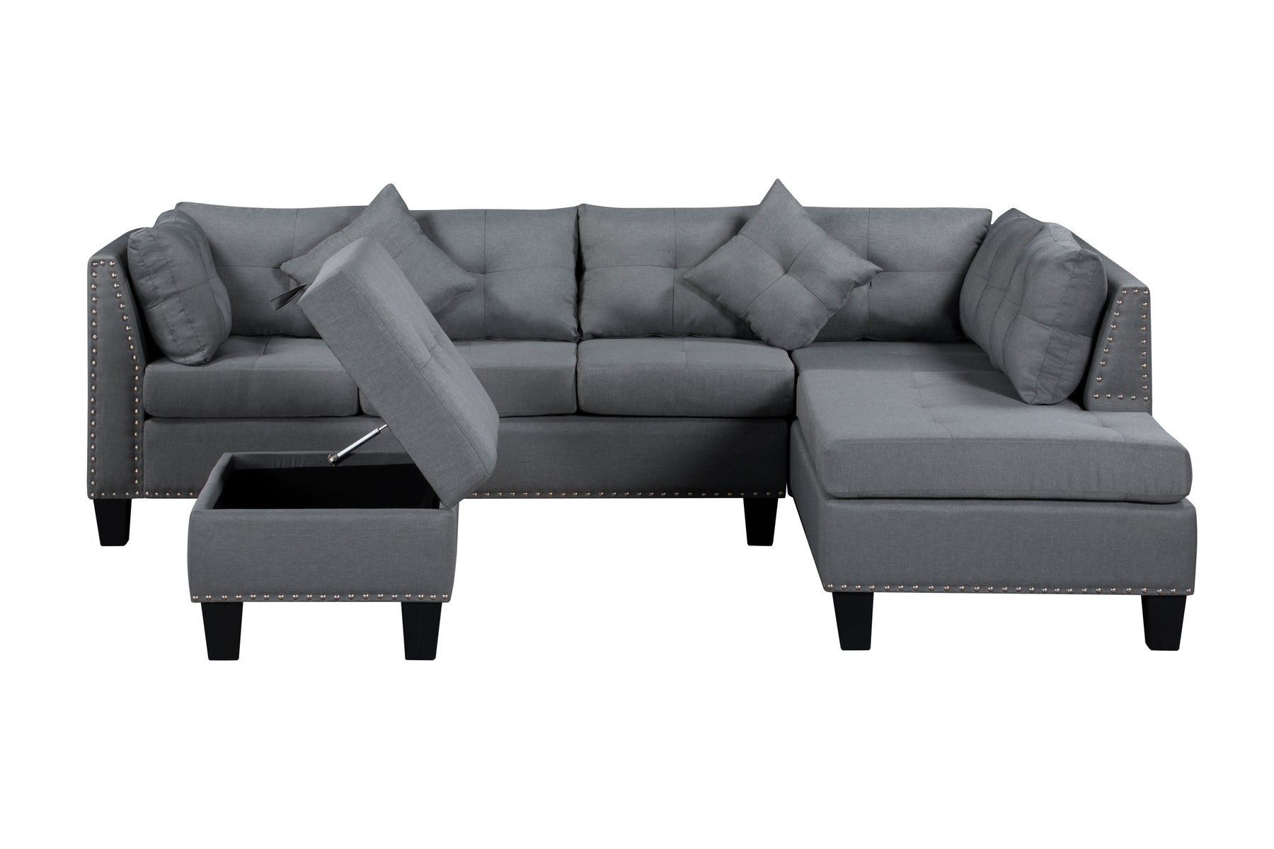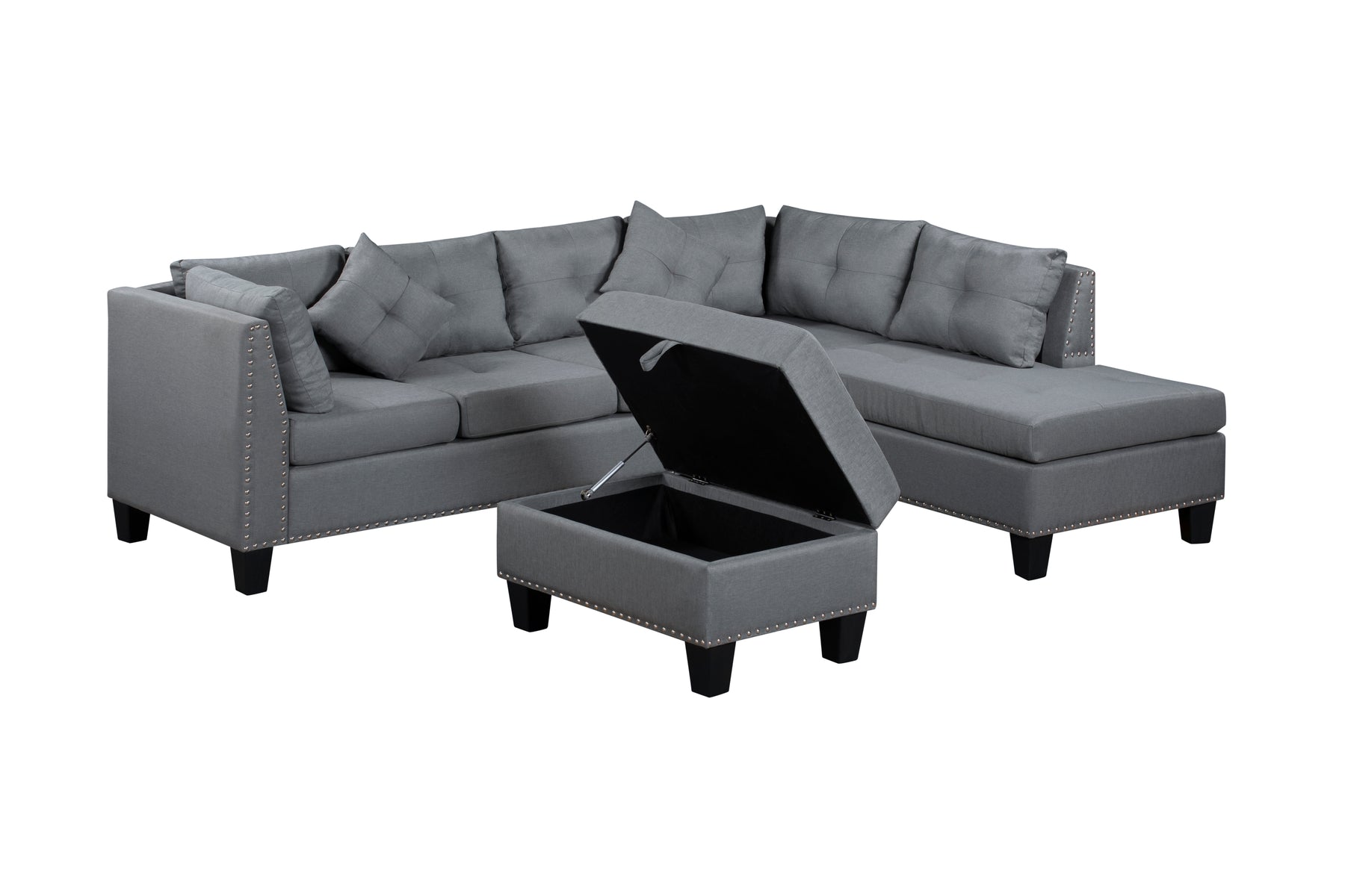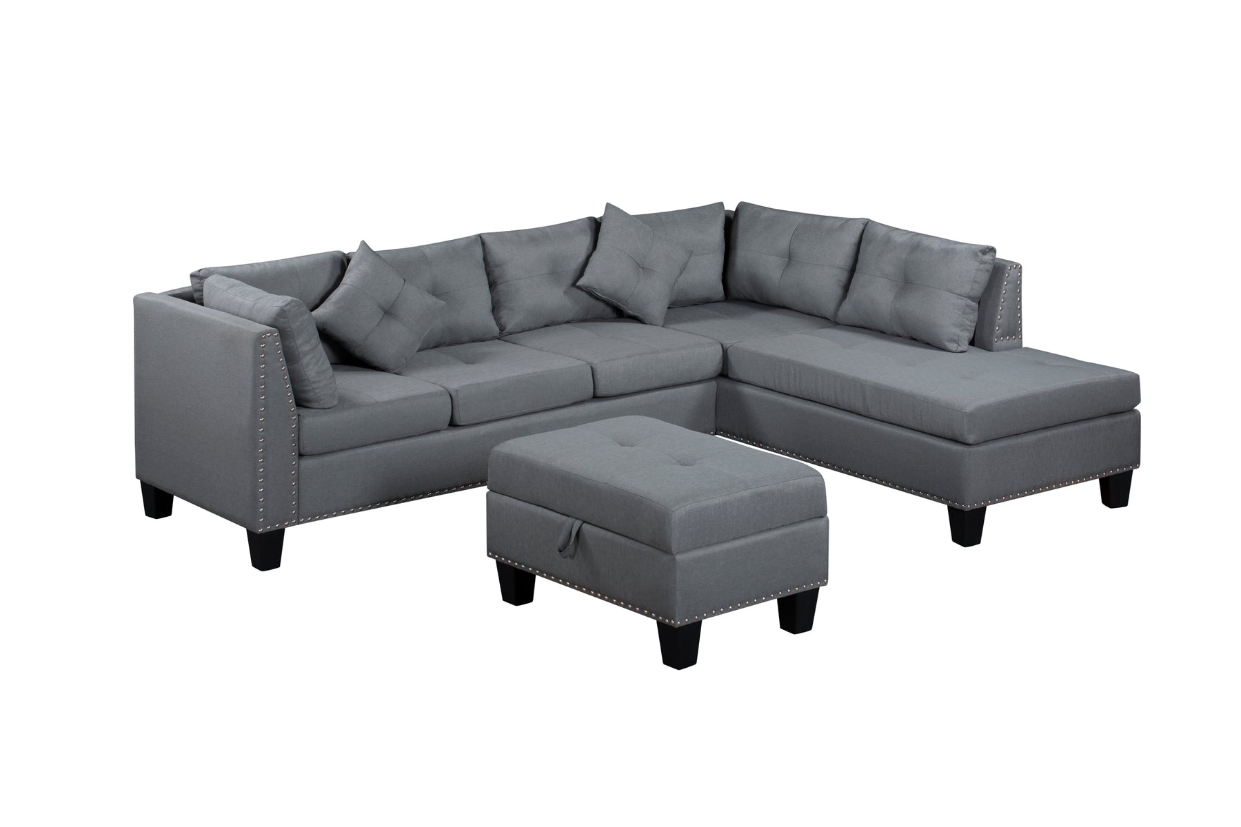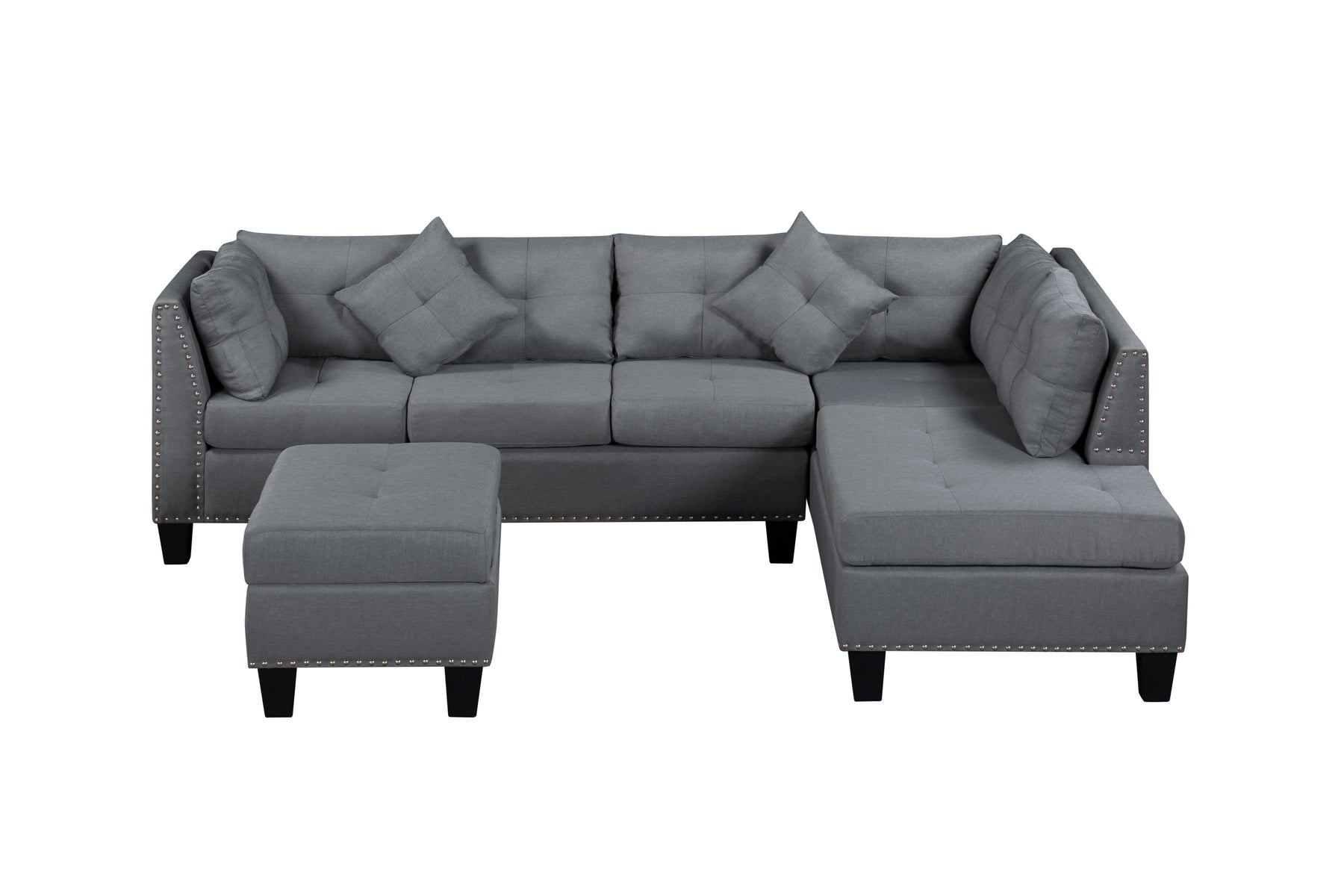 104.5' Upholstered Sofa,Chaise & Ottoman , Gray
