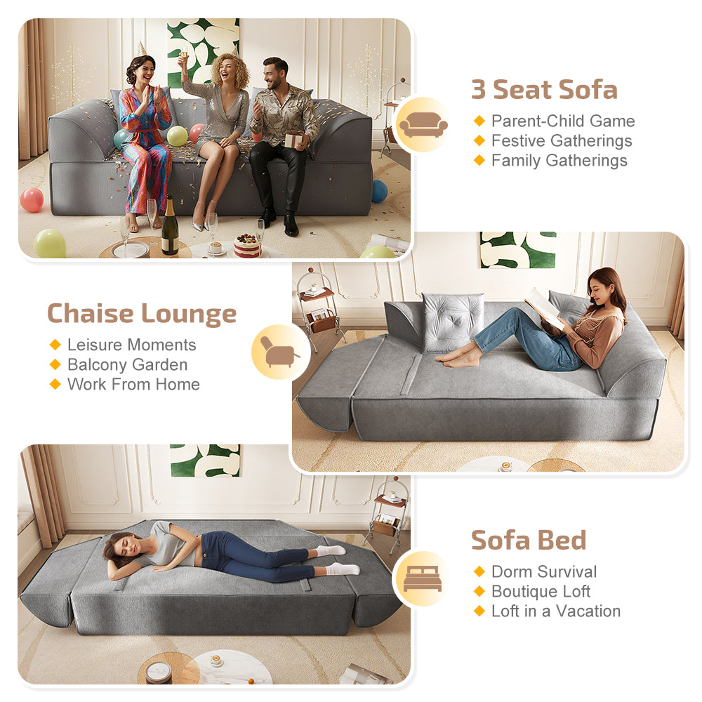 • 【Multifunctional Design】The sofa is composed of 2 movable armrests, a backrest, and a hidden zipper; The sofa can be freely switched into three forms by opening or closing it with a zipper; Fully closed zipper, it is a deep seated 3-seater sofa; After opening the zipper on either side of the left and right armrests, put it down and turn it into a chaise lounge;Open the zippers on the left and right armrests and backrest, and put them down to create a comfortable sofa bed.