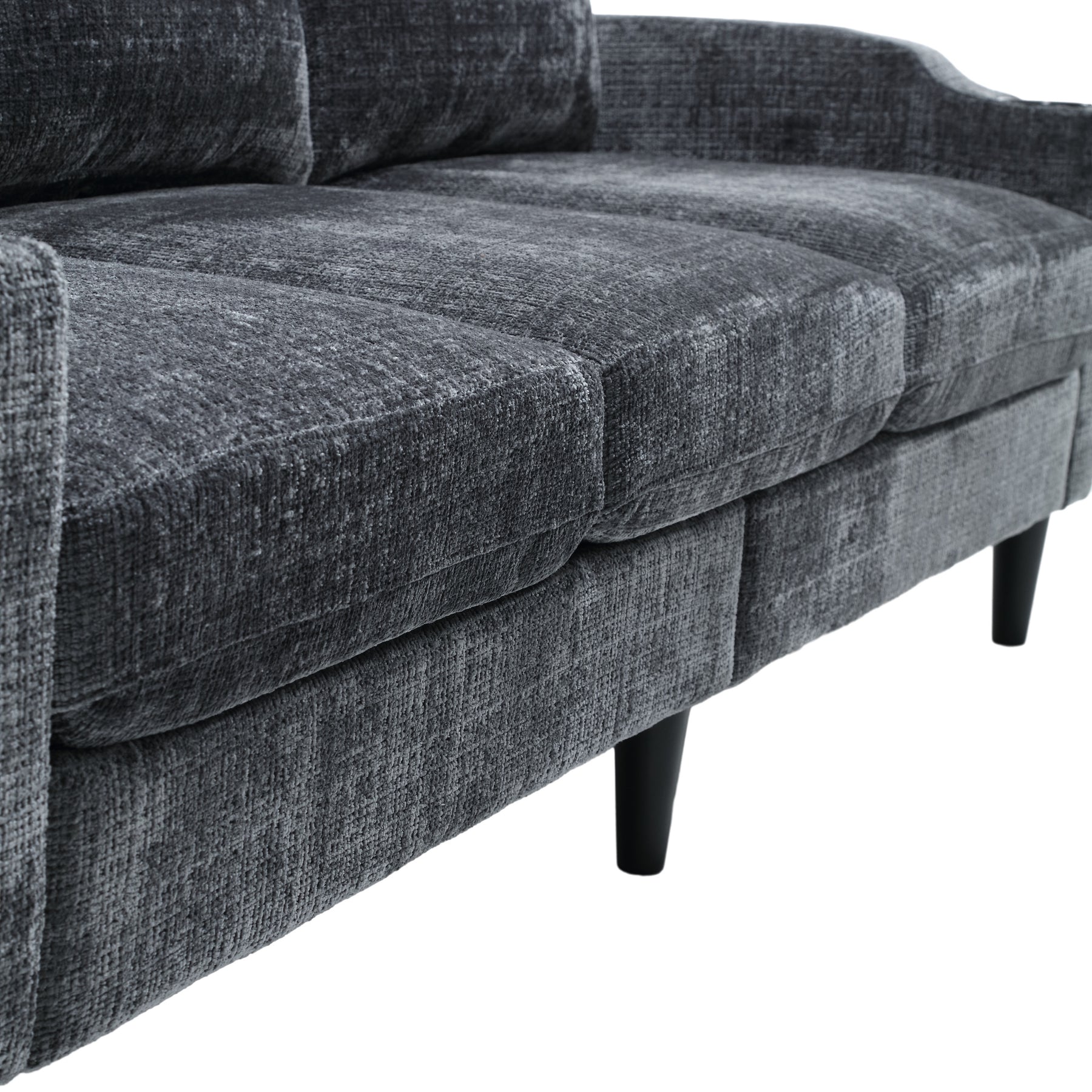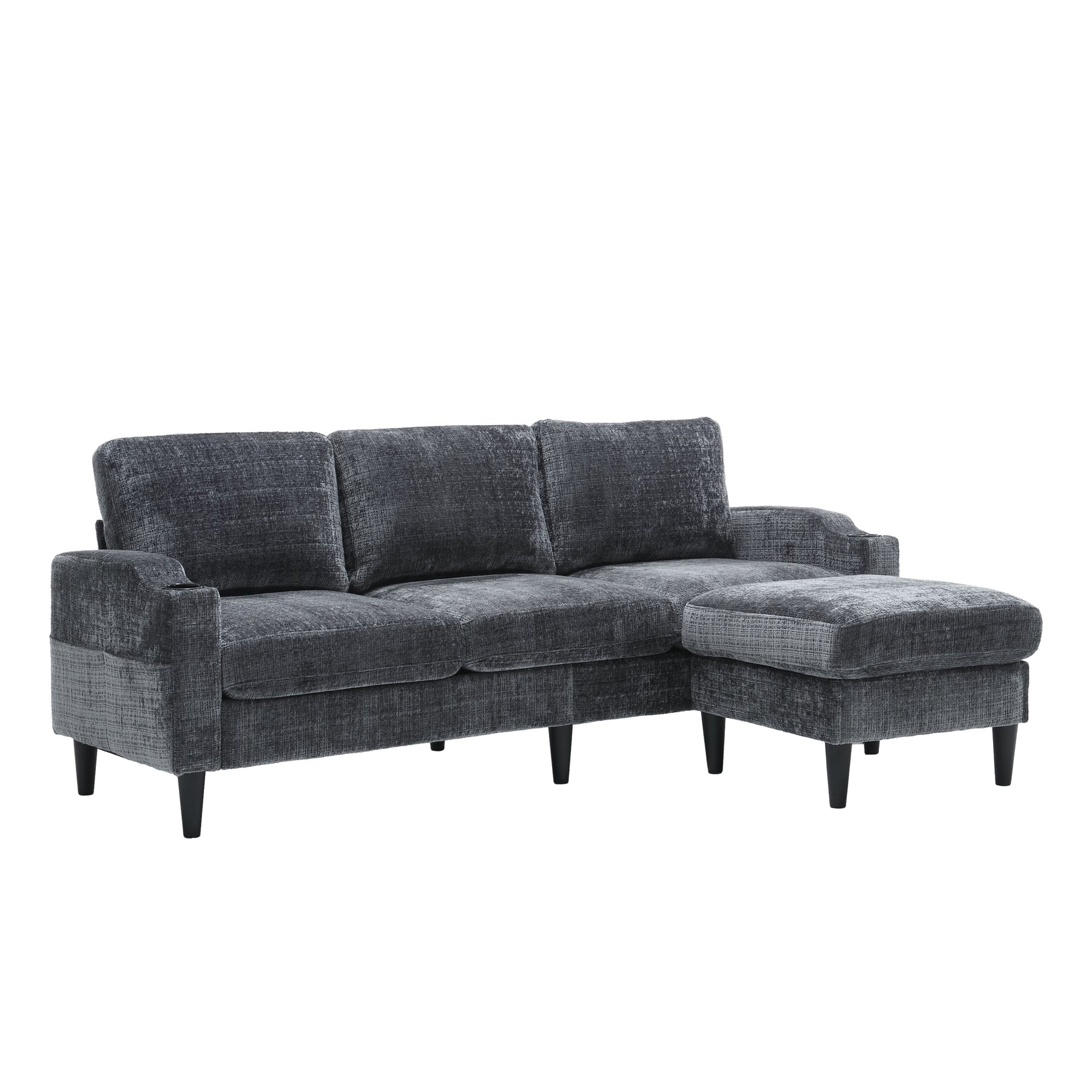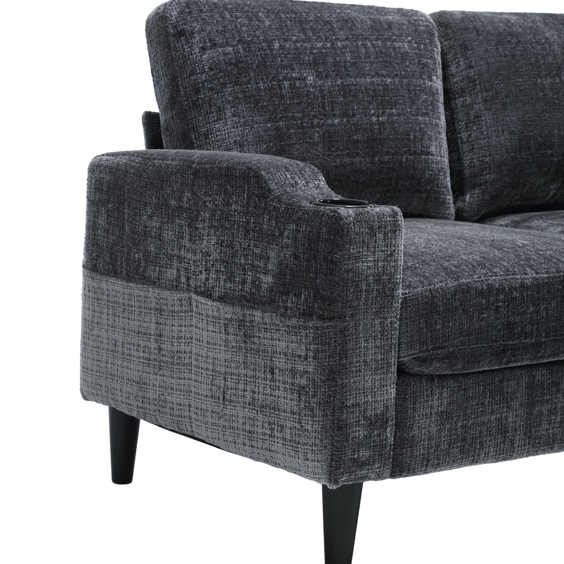 UNITED  WE WIN Sofa for three, solid wood frame, Chenille fabric, side pocket, with two cup holders, footstool with storagestorage sofa /Living room sofa cozy sectional  sofa