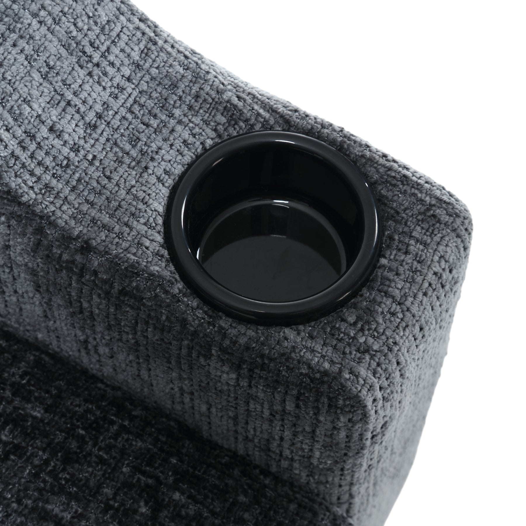 UNITED WE WIN Sofa for three, solid wood frame, Chenille fabric, side pocket, with two cup holders, footstool with storagestorage sofa /Living room sofa cozy sectional sofa