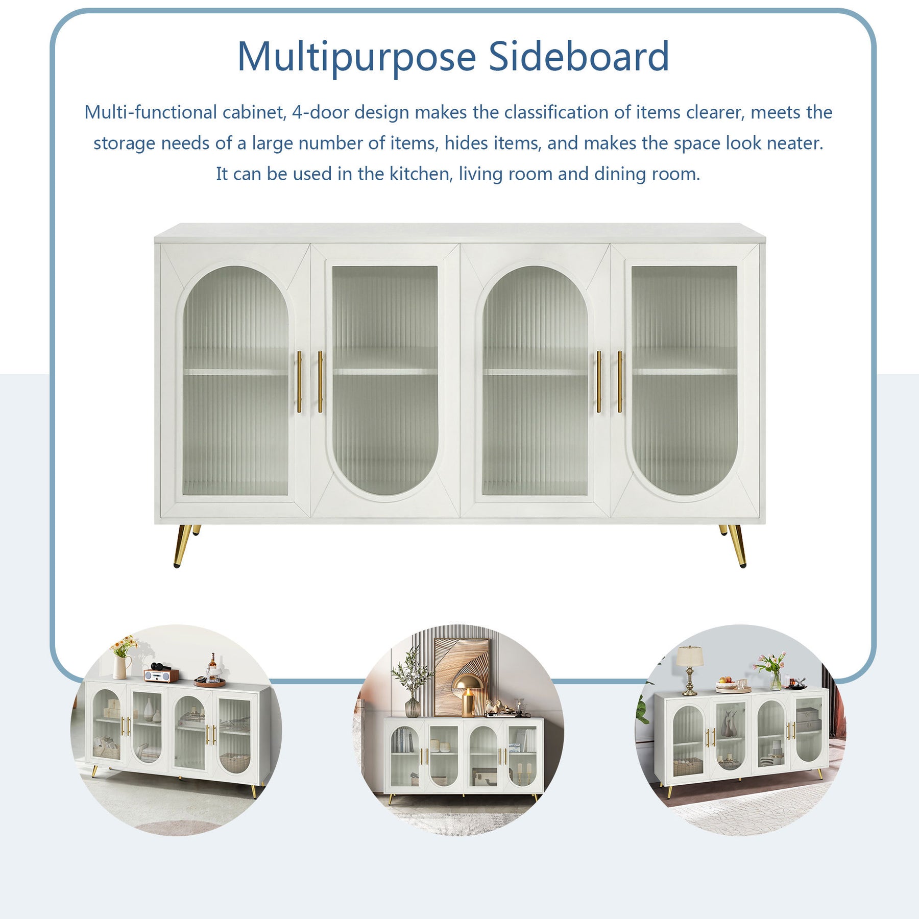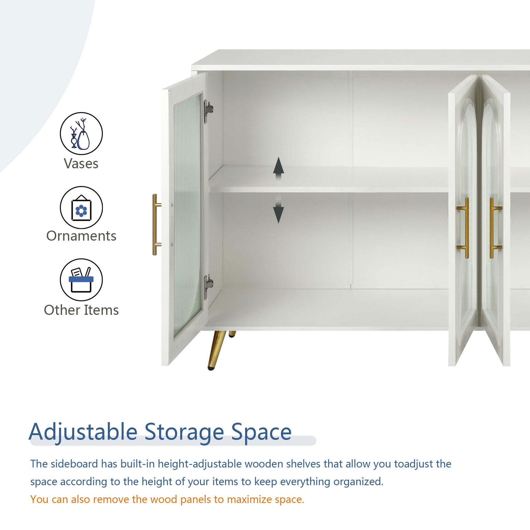 TV Stand for 65+ Inch TV, Wood TV Stand with Storage Cabinet & Adjustable Shelves, Media TV Console for Living Room Bedroom(White)