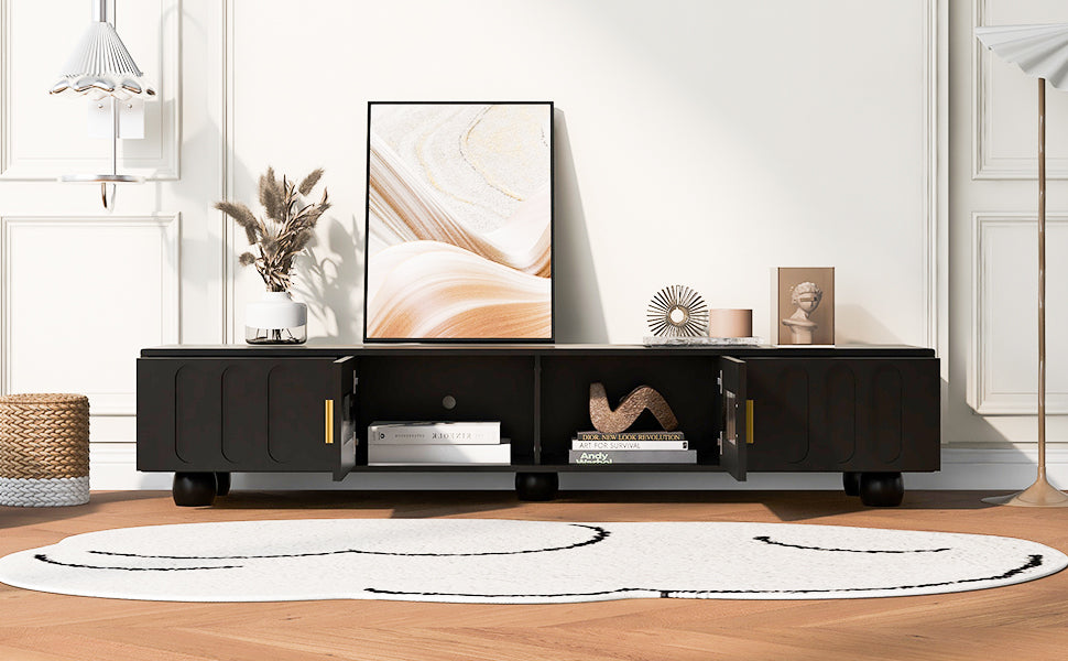 • The combination of clean lines and subtle details makes this TV stand a perfect addition to any modern living room or entertainment area.