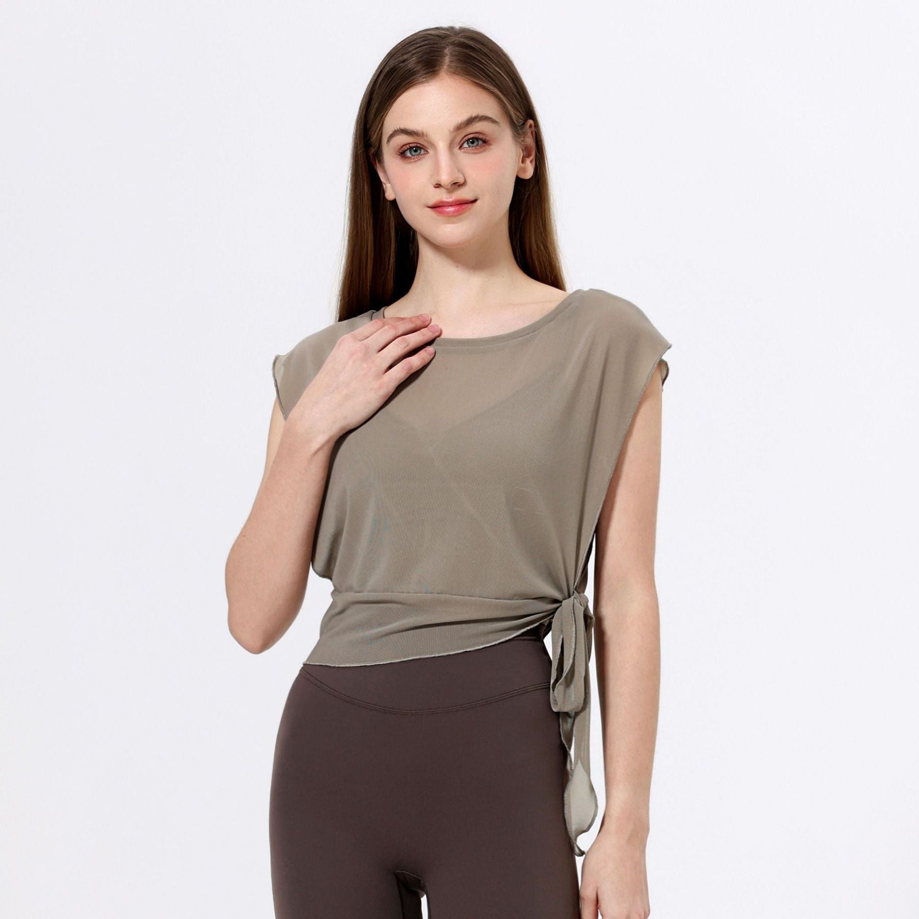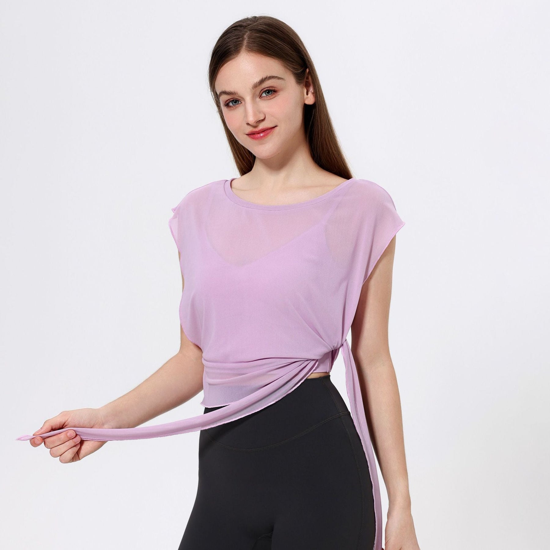 Two Piece Mesh Yoga Clothes Short Sleeve Running Quick Drying Sports Bra One Piece Cup Workout Dance Clothes Top