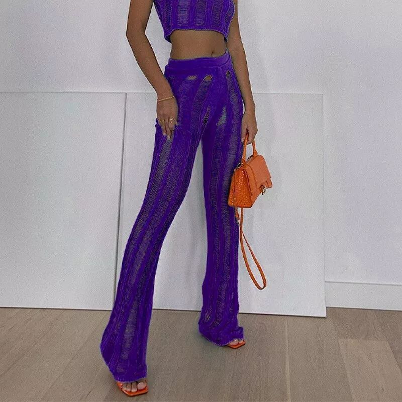 Two Piece Suit Solid Color Knitted Sexy Suit Vest Pants Two Piece Set Women