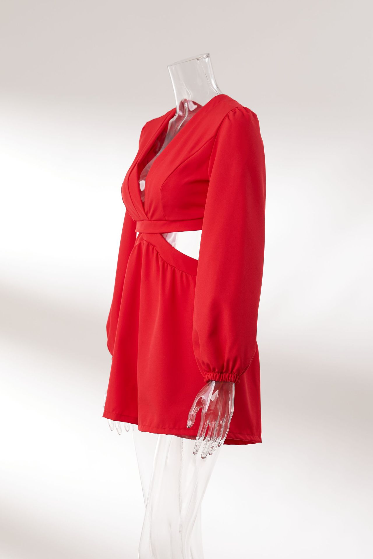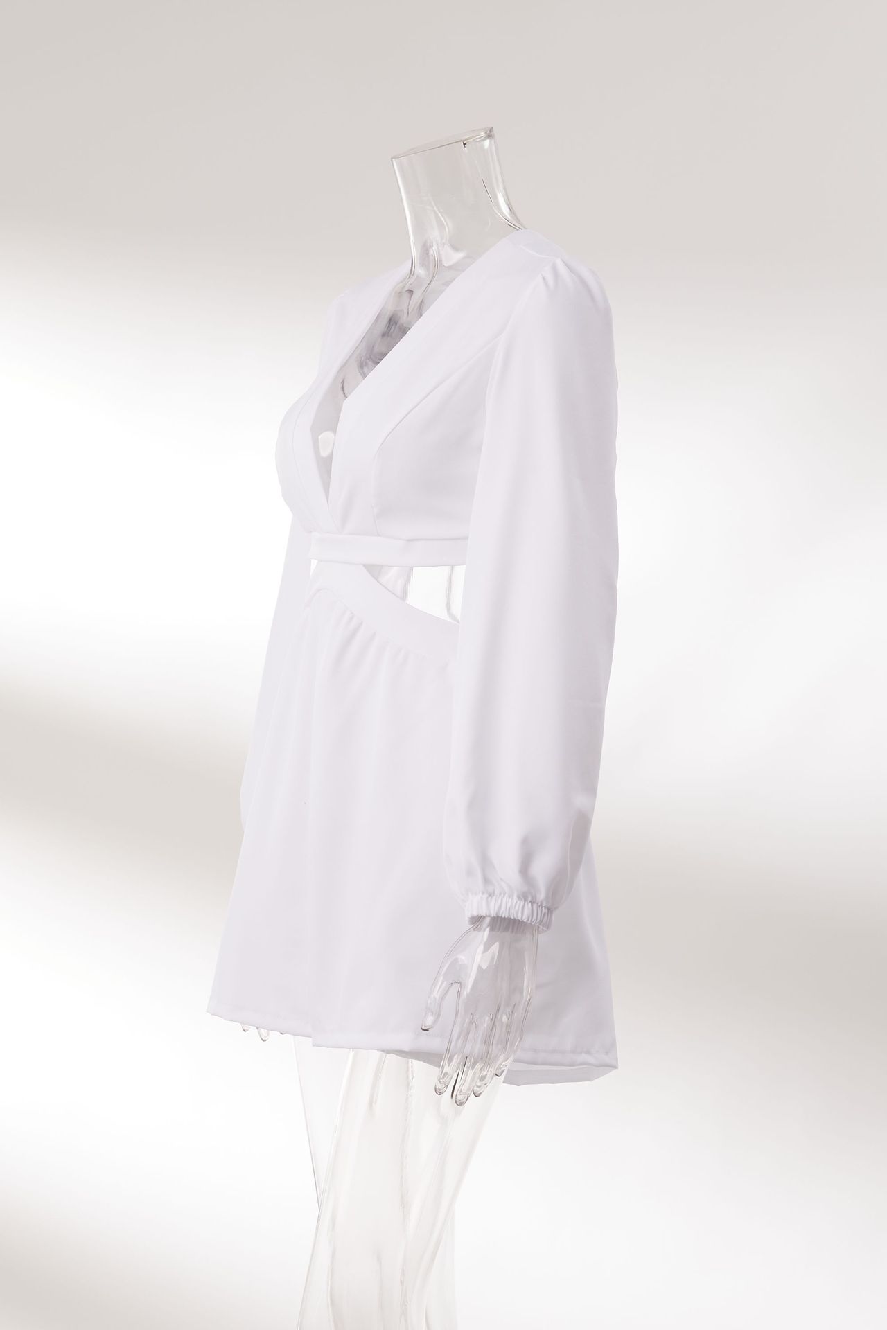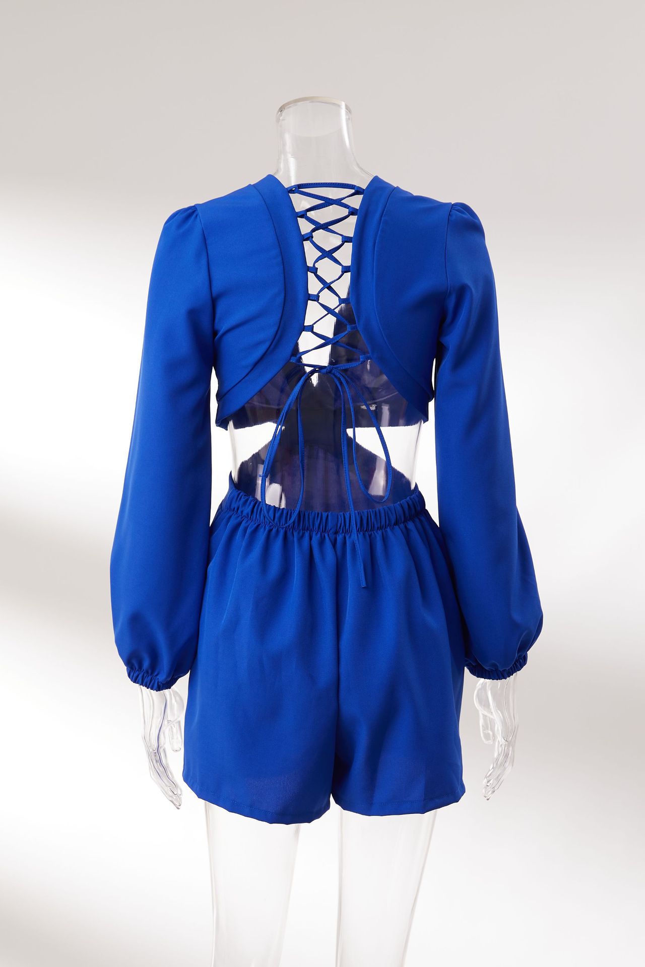V neck Lace up Long Sleeved Jumpsuit Autumn Sexy Cutout Shorts