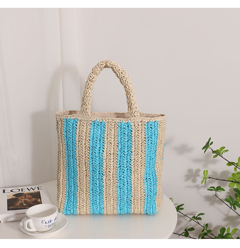 Vertical Stripes French Straw Bag Portable Contrast Color Straw Bag Woven Bag Women&