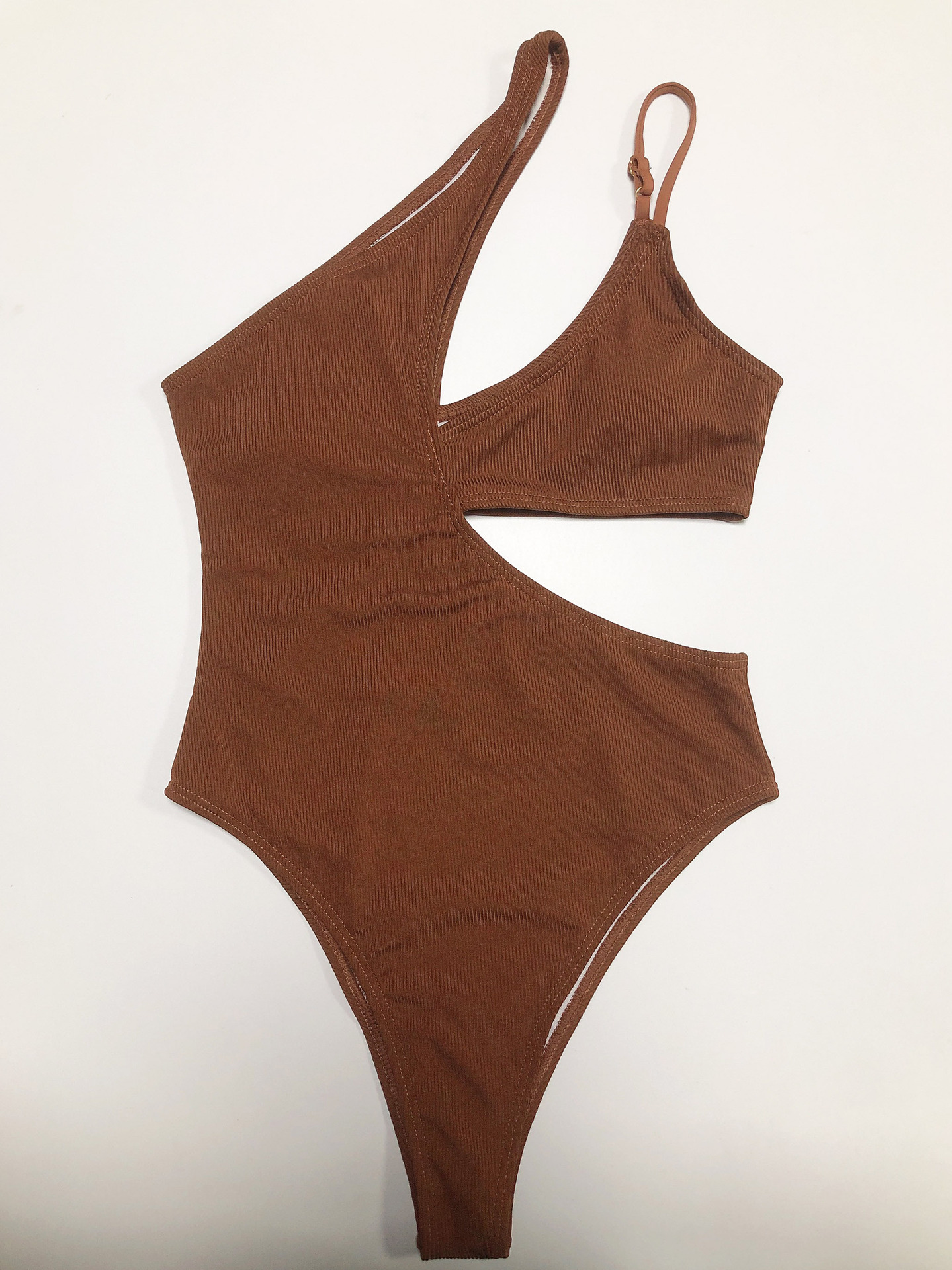 Wave Swimsuit Solid Color Rib Fabric Sexy Hollow Out Cutout out Swimsuit Bikini