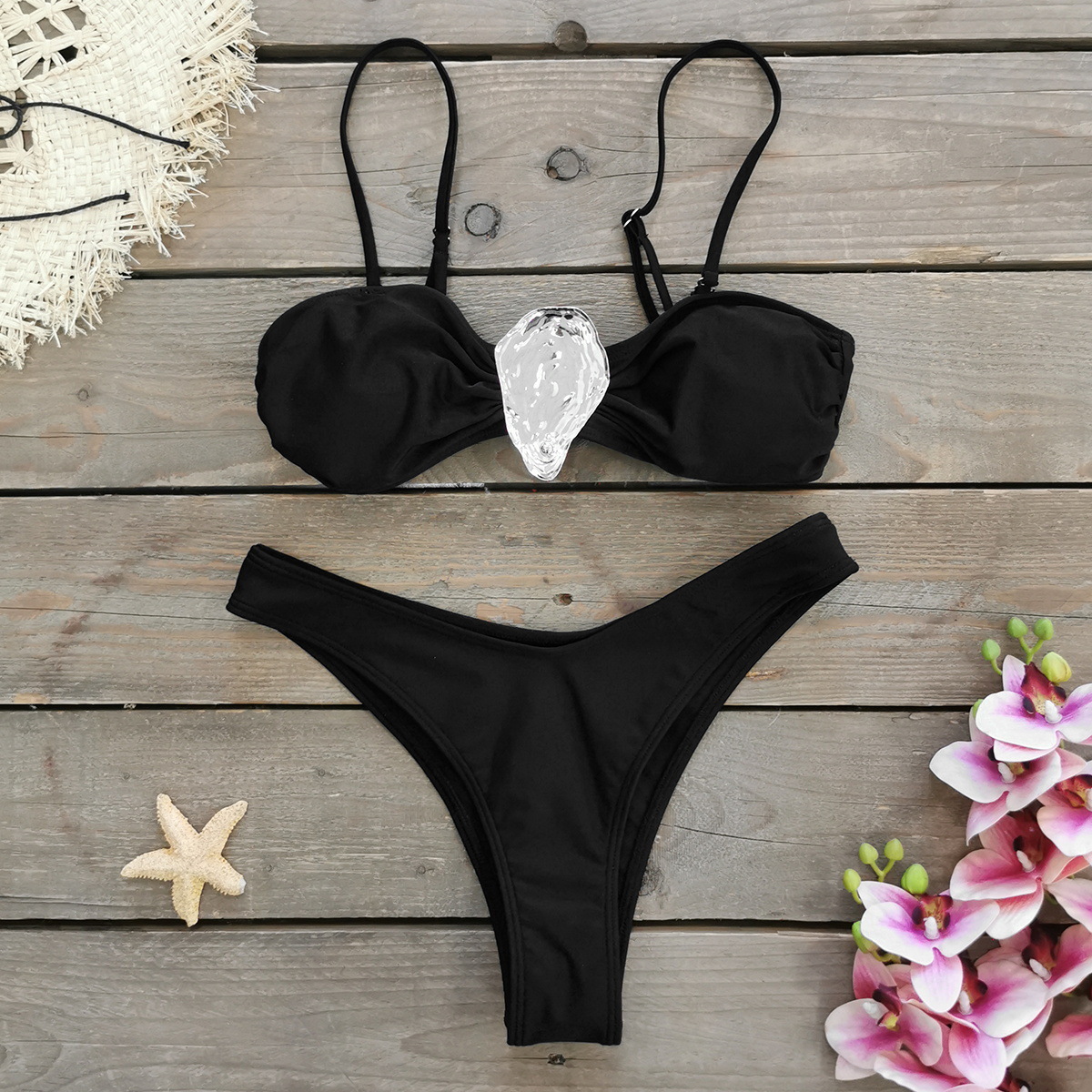 White Bra Bikini Three Piece Sets Solid Color Sexy Split Swimsuit Women Bikini