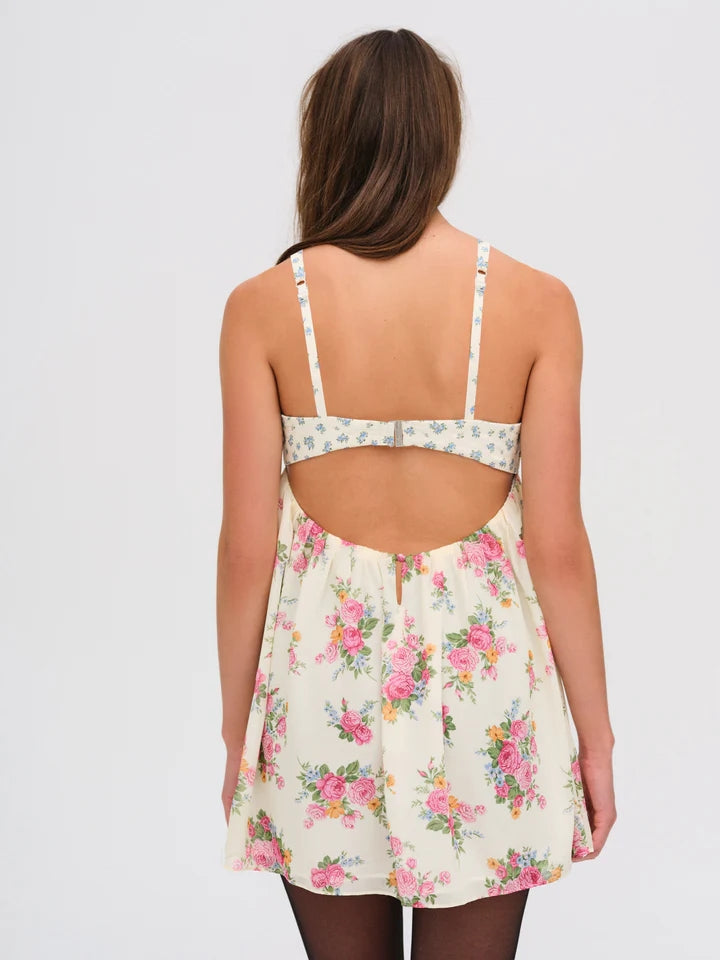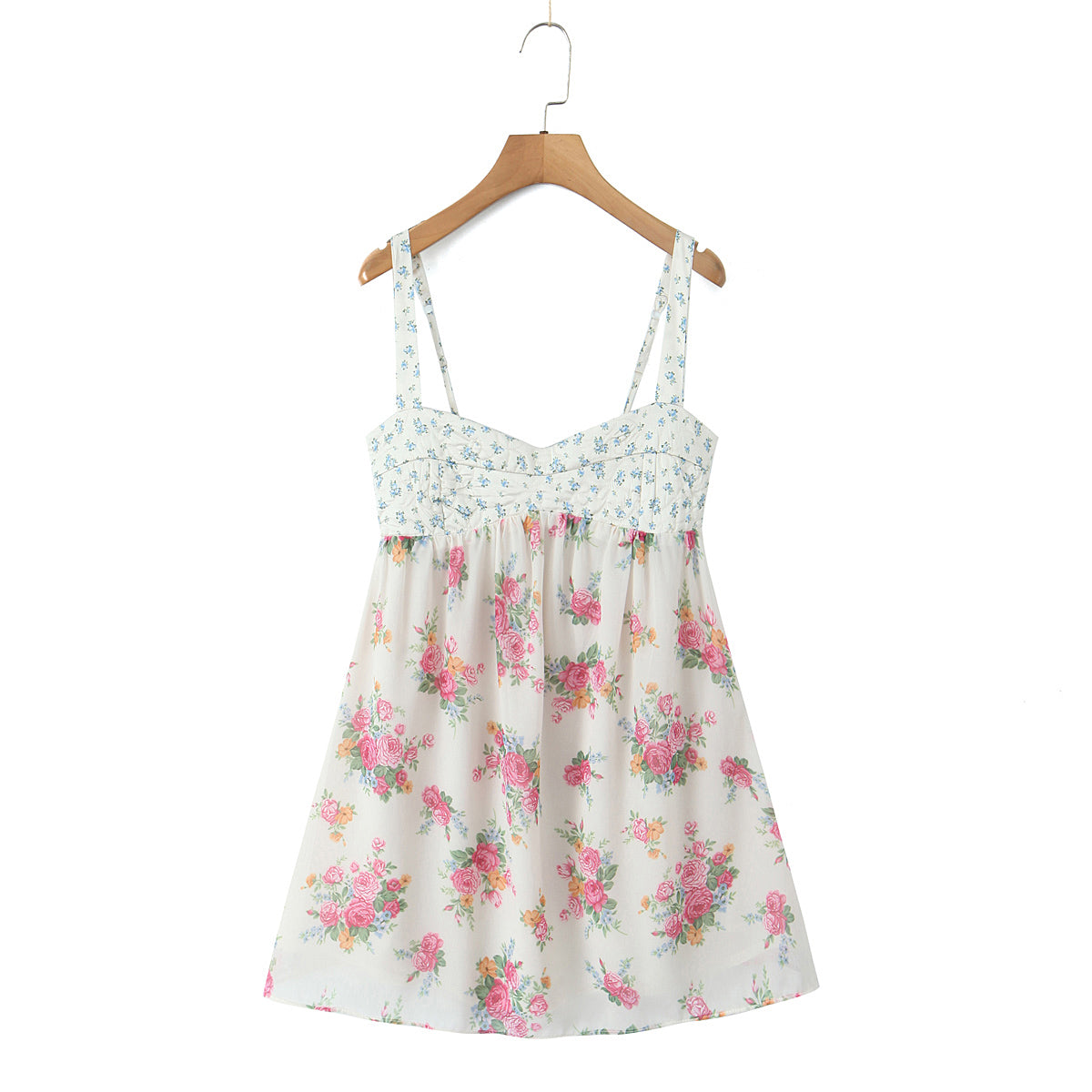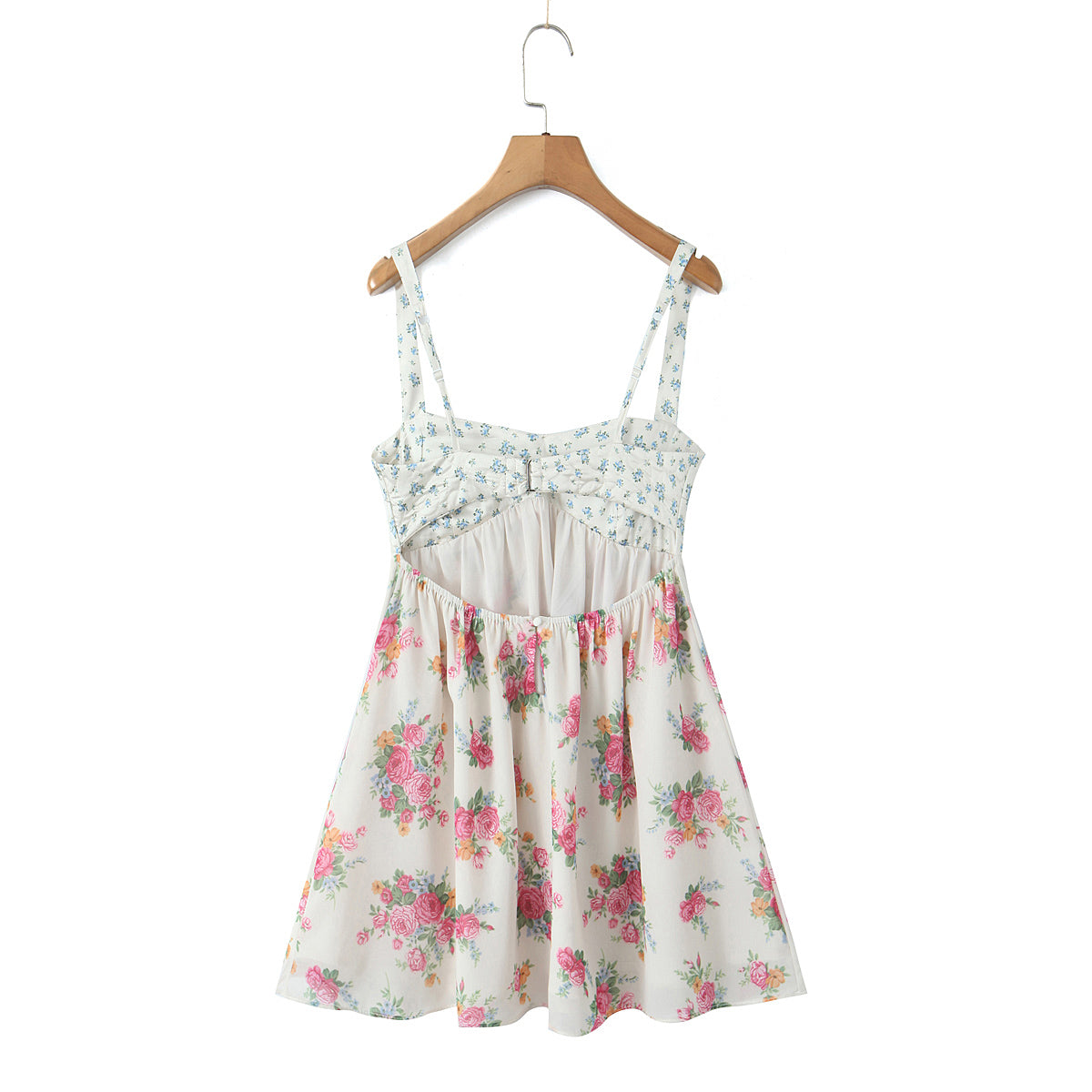 Winter Vacation Color Matching Chest Embroidered Printed Backless Casual Sling Dress