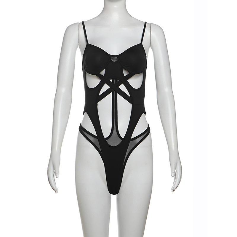 Winter Women Clothing Solid Color Sexy Sling Tight Fitting Cinched Hollow Out Cutout out Stitching Jumpsuit Women