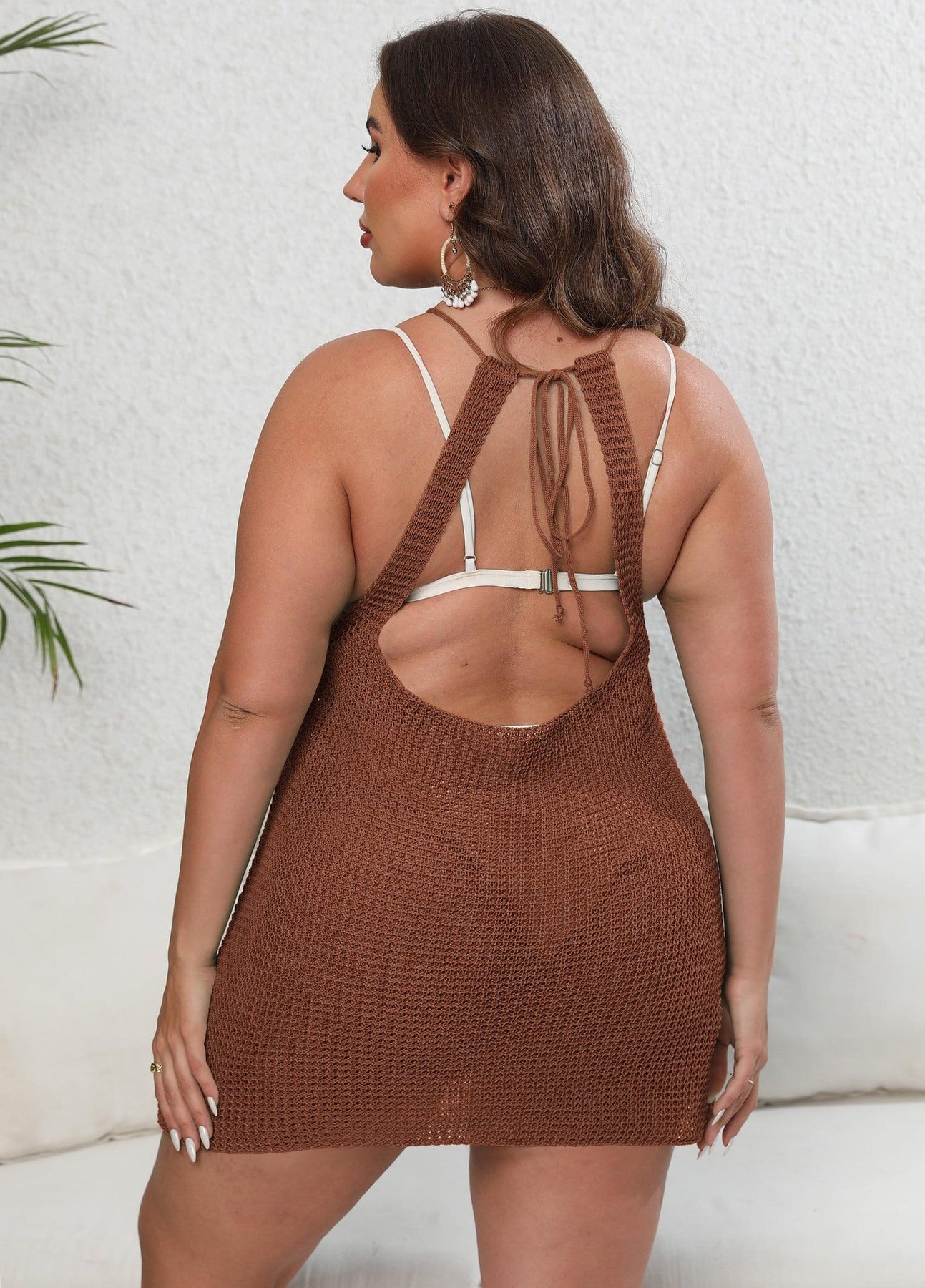 Women Beach Beach Cover Up Women Clothes Sexy Backless Woven Tied Dress