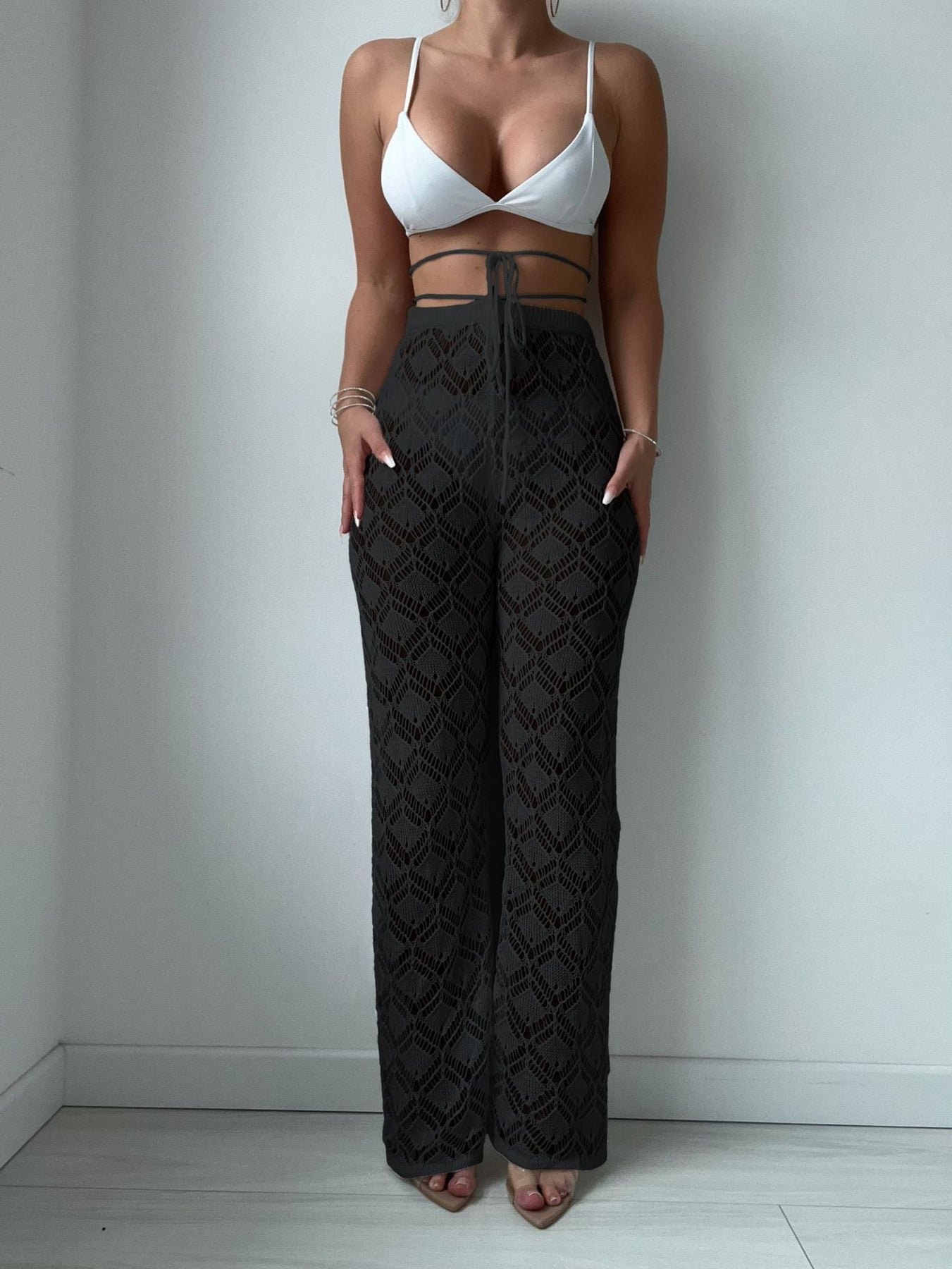 Women Beach Hollow Out Cutout Out Trousers Casual Sexy High Waist Bikini Sun Proof Trousers