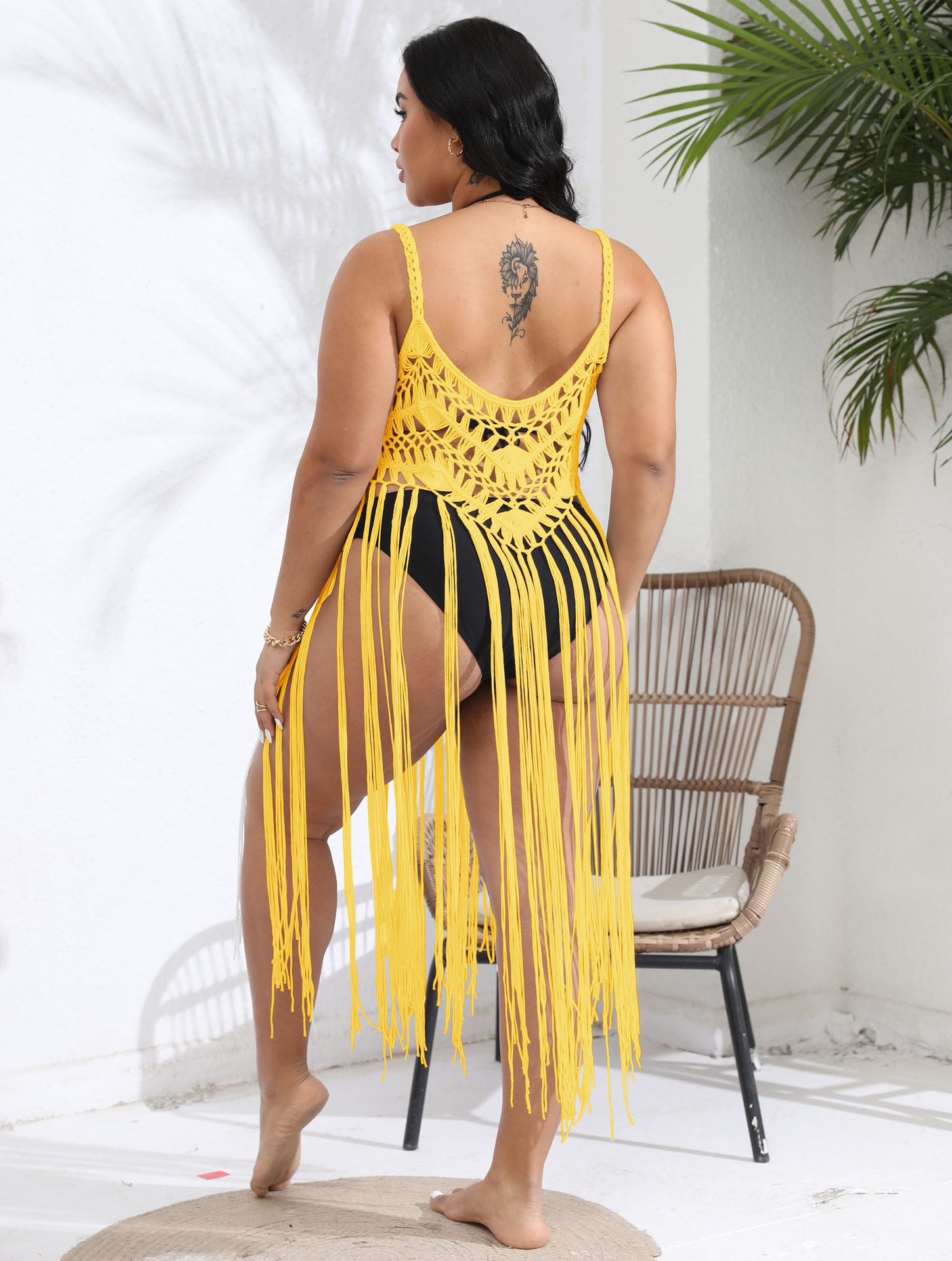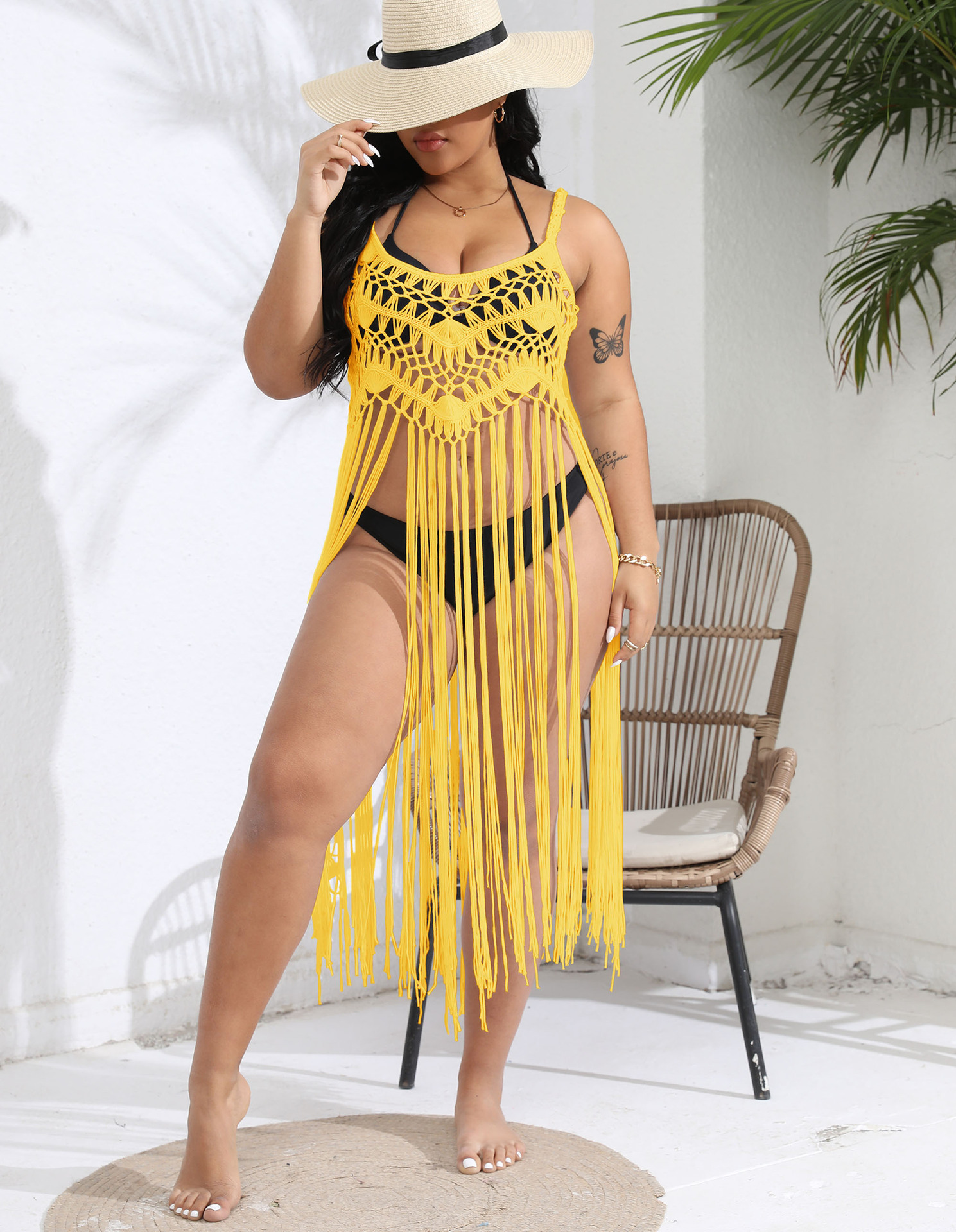 Women Beach Vacation Blouse Bikini Overclothes Tassel Patchwork Cami Dress
