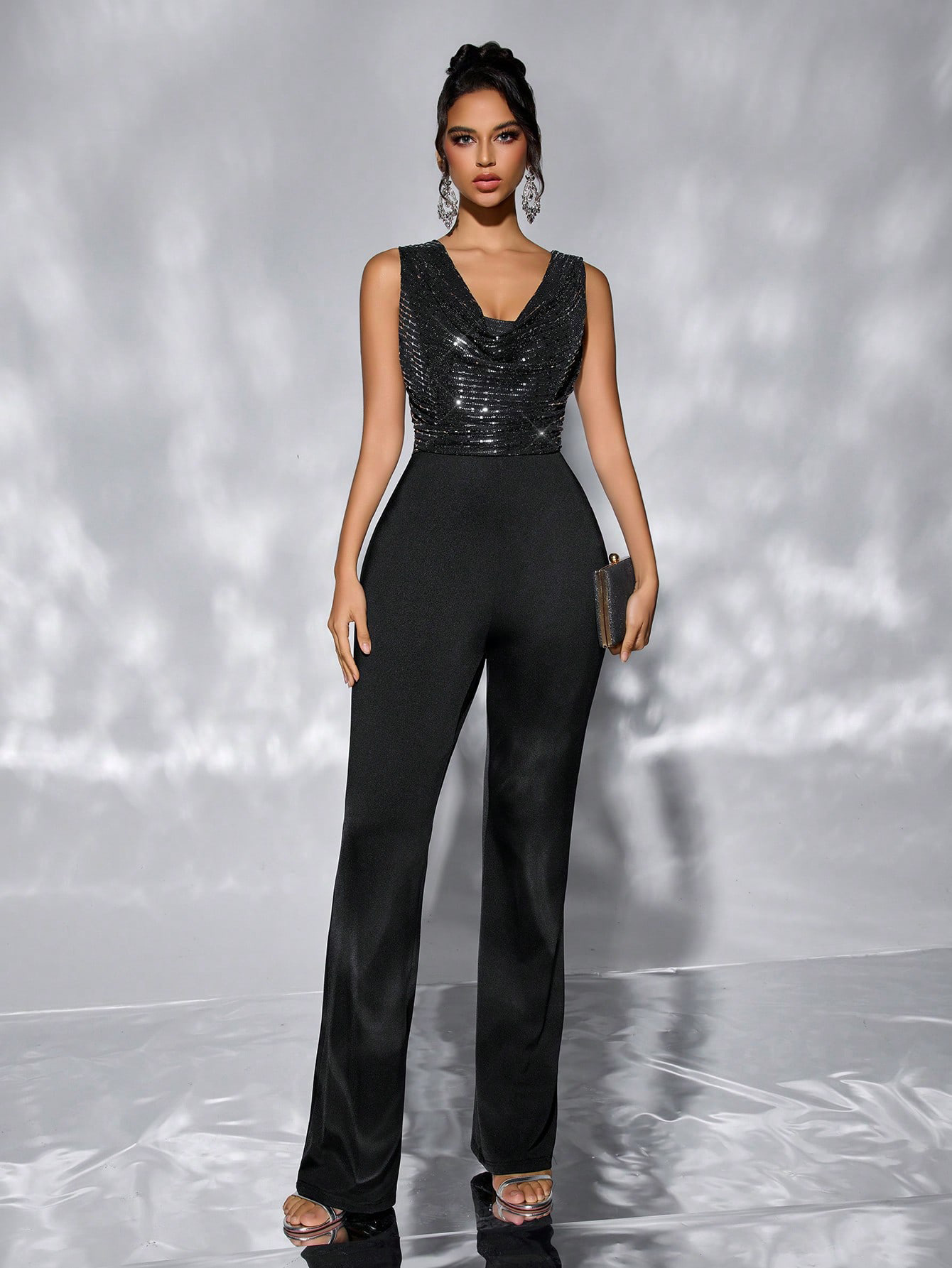 Women Casual Waist Tight Women Jumpsuit Loose Wide Leg Sequ Jumpsuit