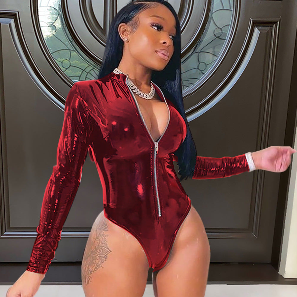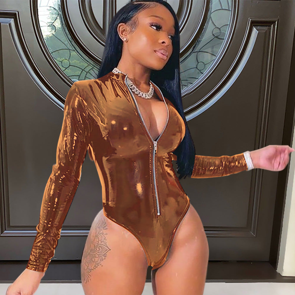 Women Clothing Nightclub Uniforms High Elastic Tight Faux Leather Border One-Piece Cotton-Padded Clothes