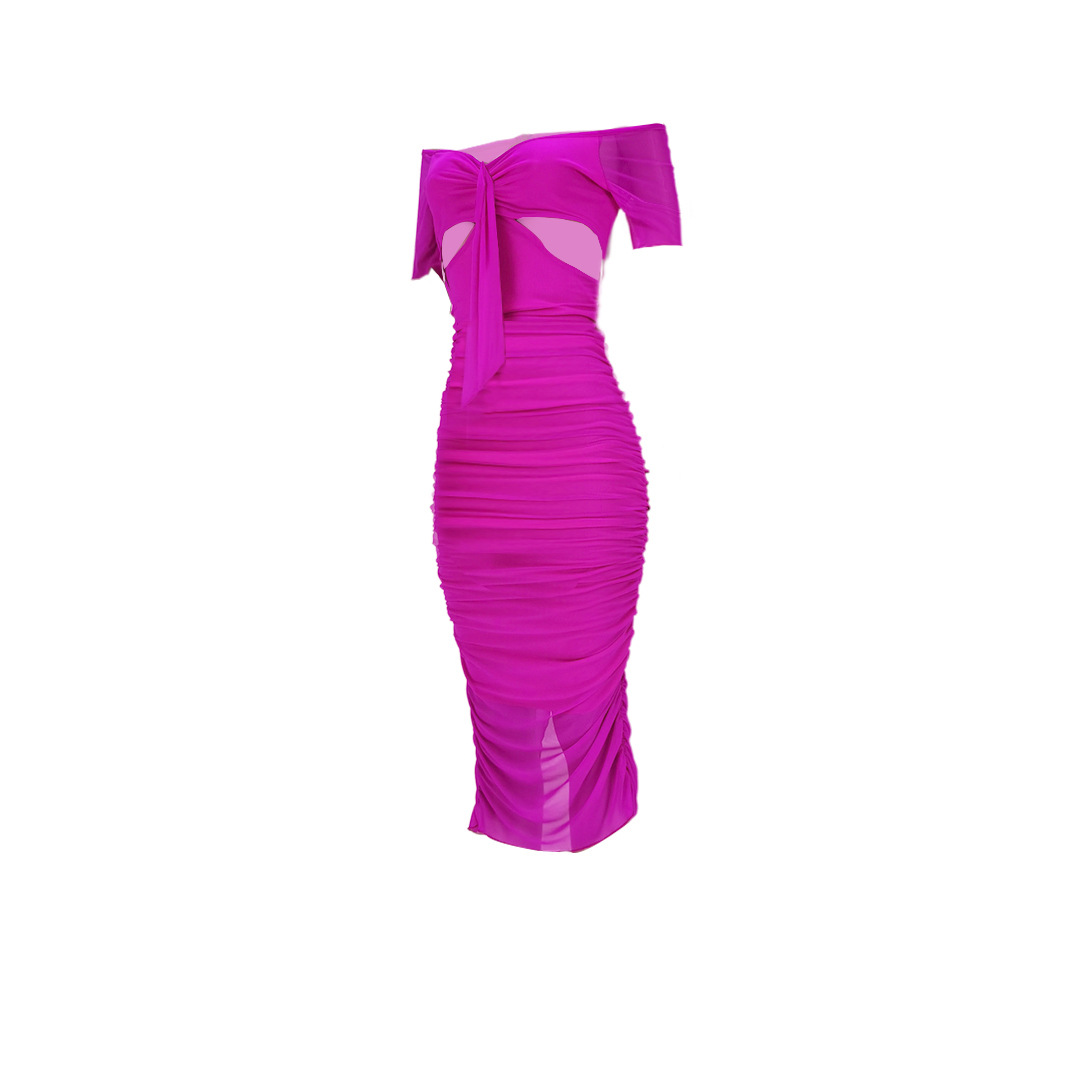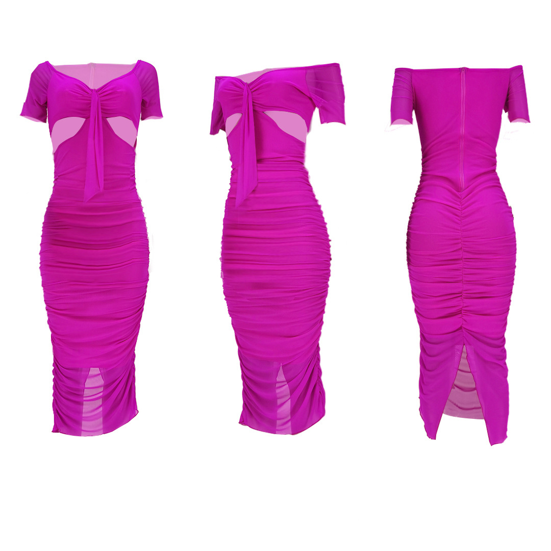 Women Clothing Nightclub Uniforms Mesh Pleats Split off-Shoulder Sexy Dress