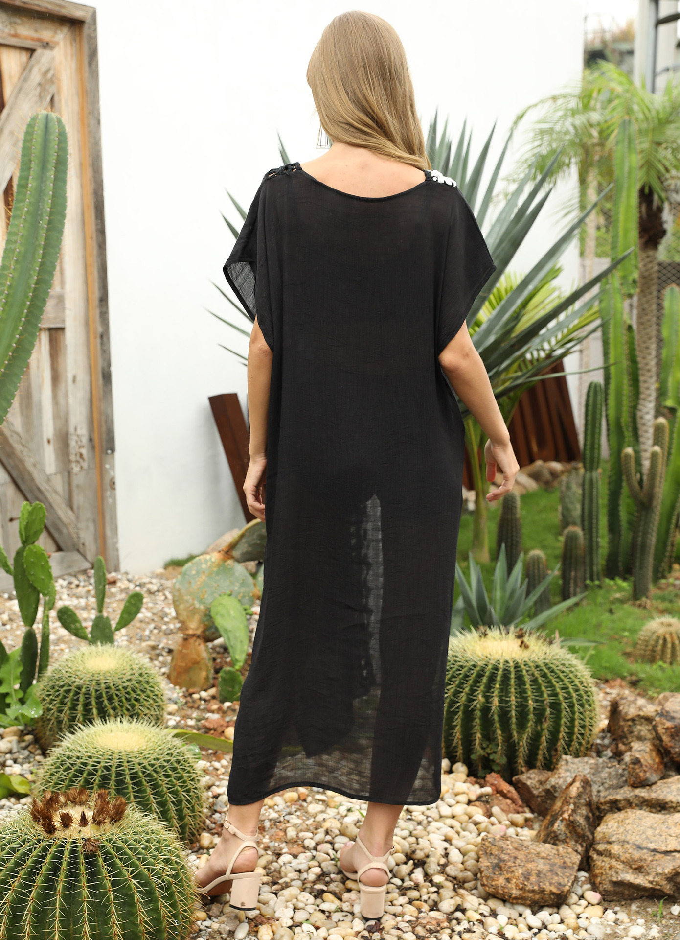 Women Clothing Sexy Deep V Plunge Slit Loose Black White Contrast Color Beach Dress Long