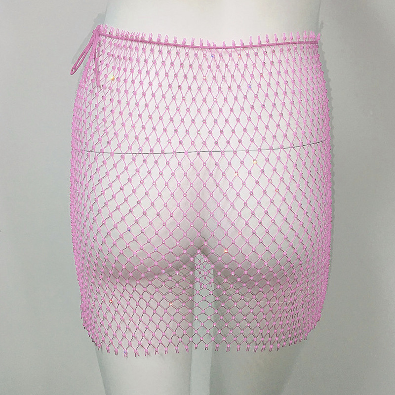 Women Clothing Sexy Fishnet Rhinestone Skirt Sweet Spicy Mini Skirt Rhinestone Miniskirt Women