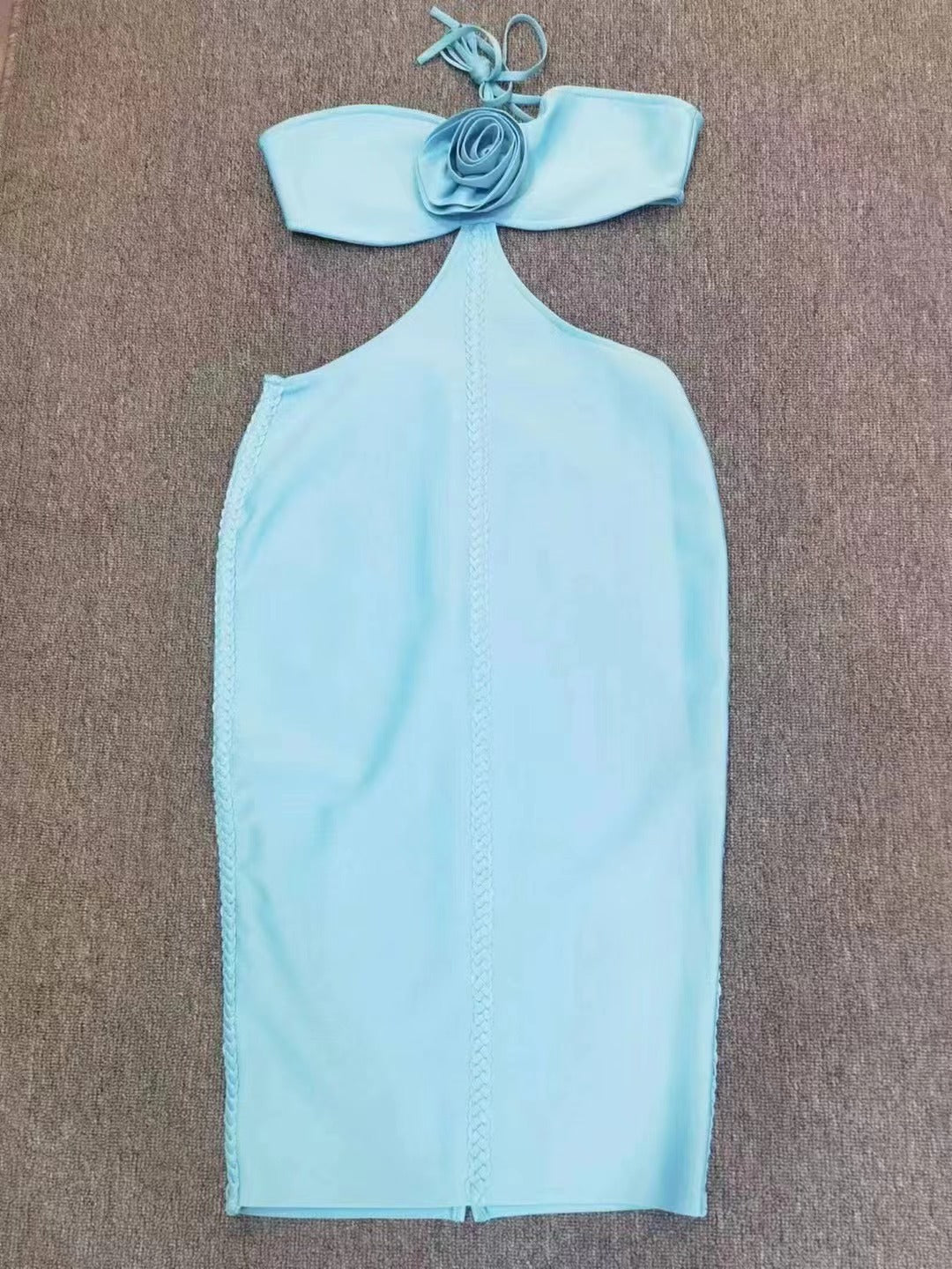 Women Clothing Spring Summer Sexy Halter Cut out Backless Three Dimensional Floral Tight Dress