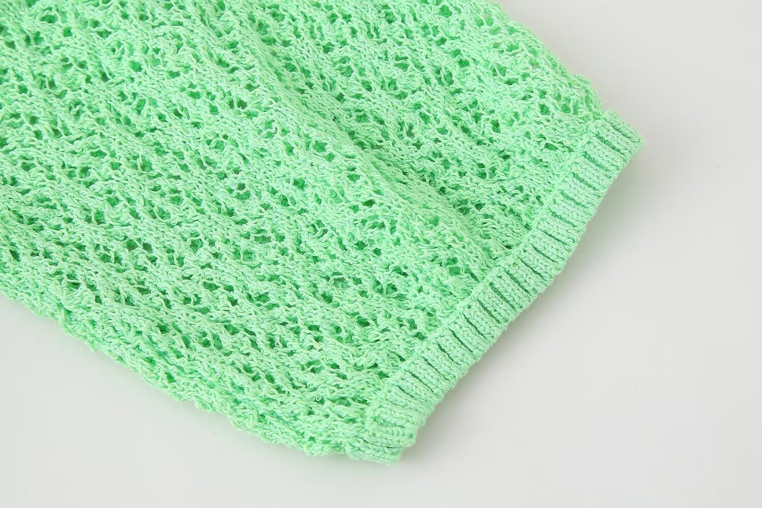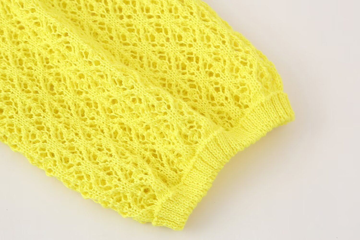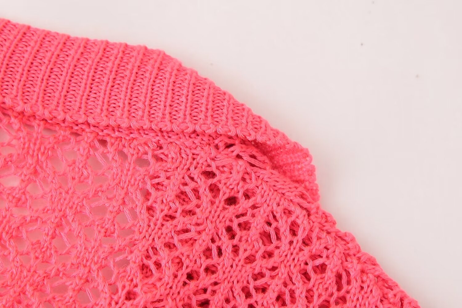 Women Clothing Summer Jacquard Mesh Loose Polo Collar Knitwear