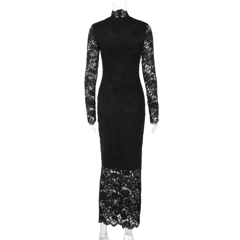 Women Clothing Summer Sexy Lace Stitching Slim Long Sleeve Dress