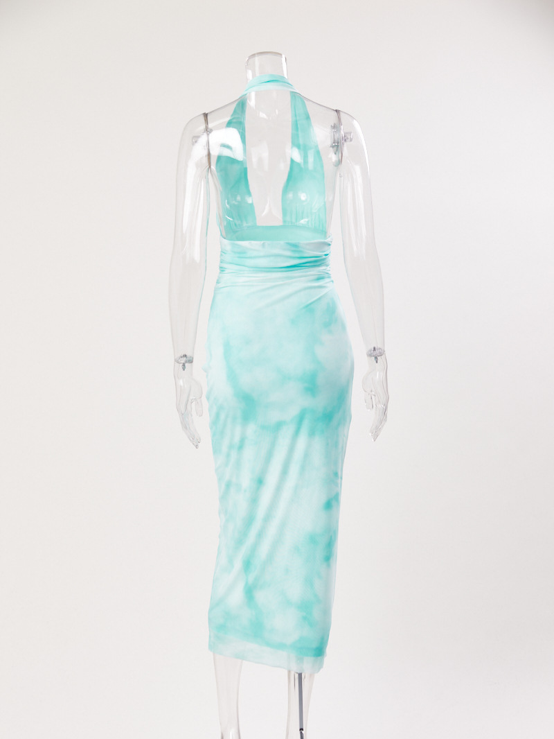 Women Clothing Summer Sexy Micro Elastic Tie Dye Printing Halter Slim Fit Dress