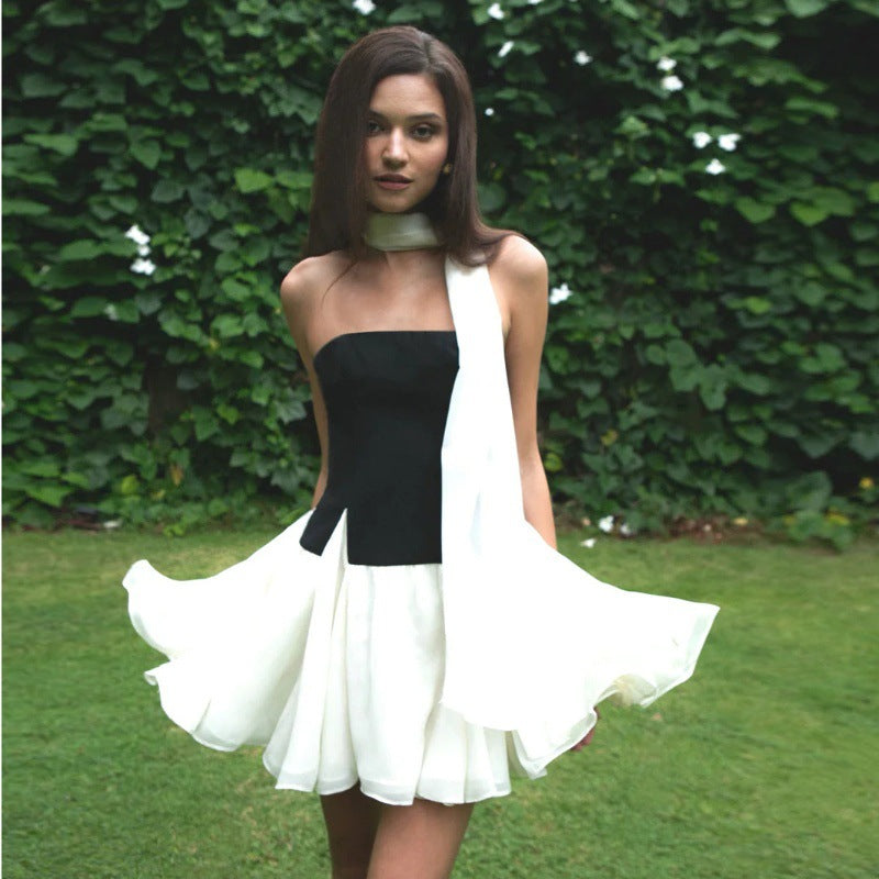 Women Clothing Summer Sexy Ribbon Sexy Tube Top Mini Slim Fit Skirt Two Piece Sets