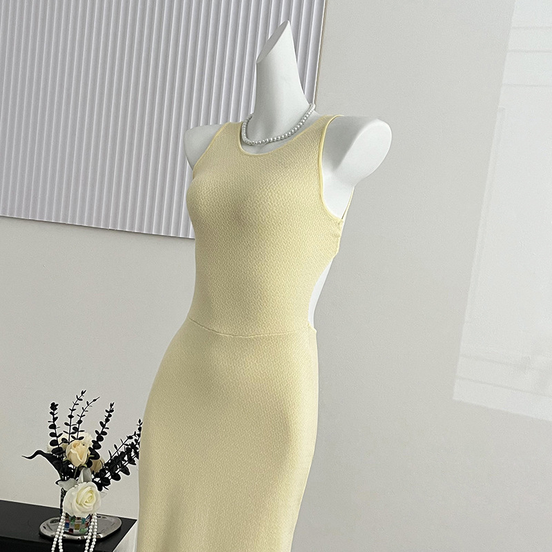 Women Clothing Summer Sexy round Neck Slim Fit Backless Tight Waist Sheath Dress