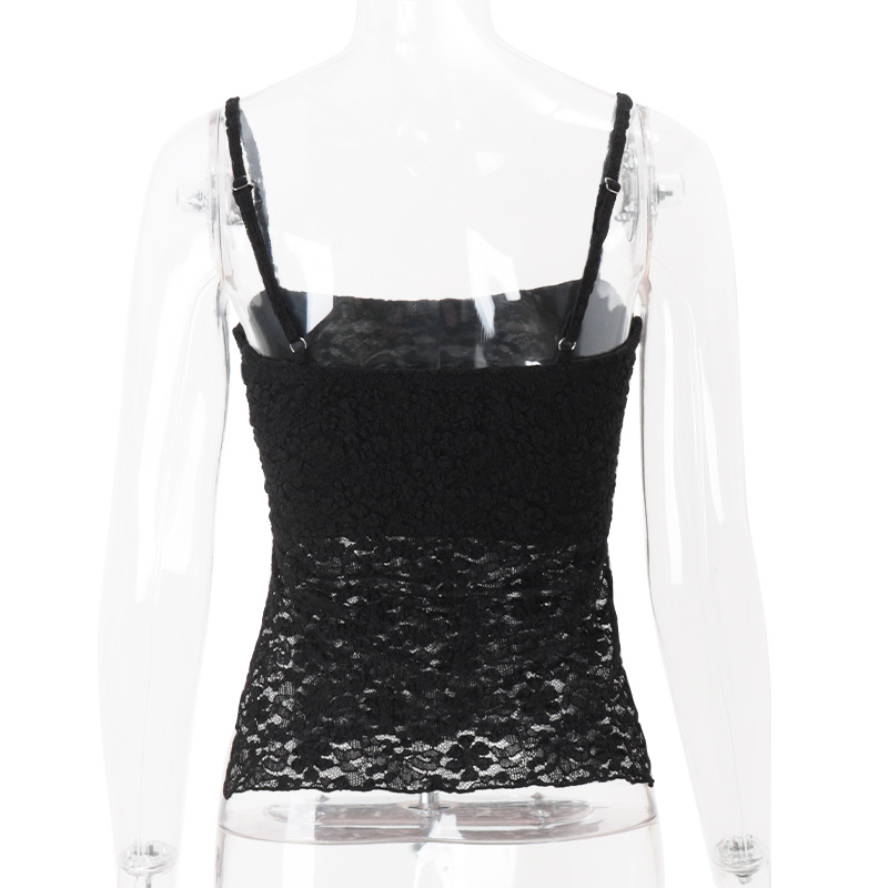 Women Clothing Summer Sexy Slim Lace Backless Solid Color Camisole