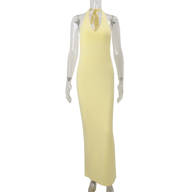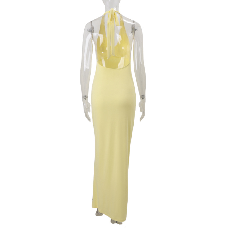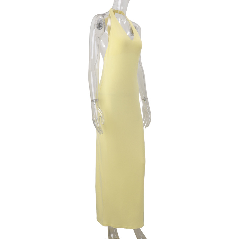 Women Clothing Summer Sexy V neck Halter Backless High Waist Slim Solid Color Dress