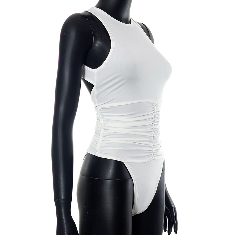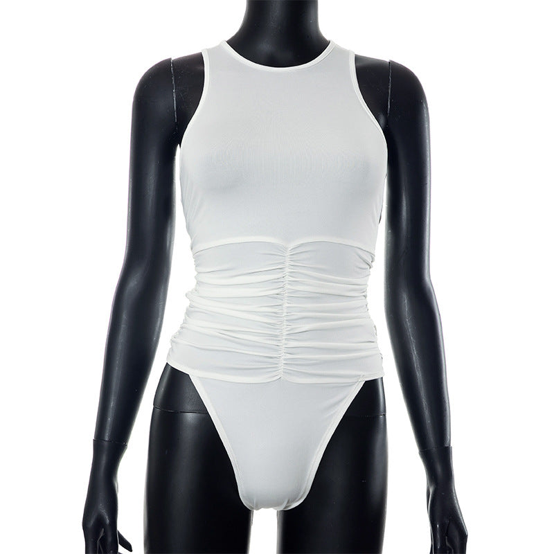 Women Clothing Summer Solid Color round Neck Sleeveless Back Zipper Hollow Out Cutout umpsuit for Women