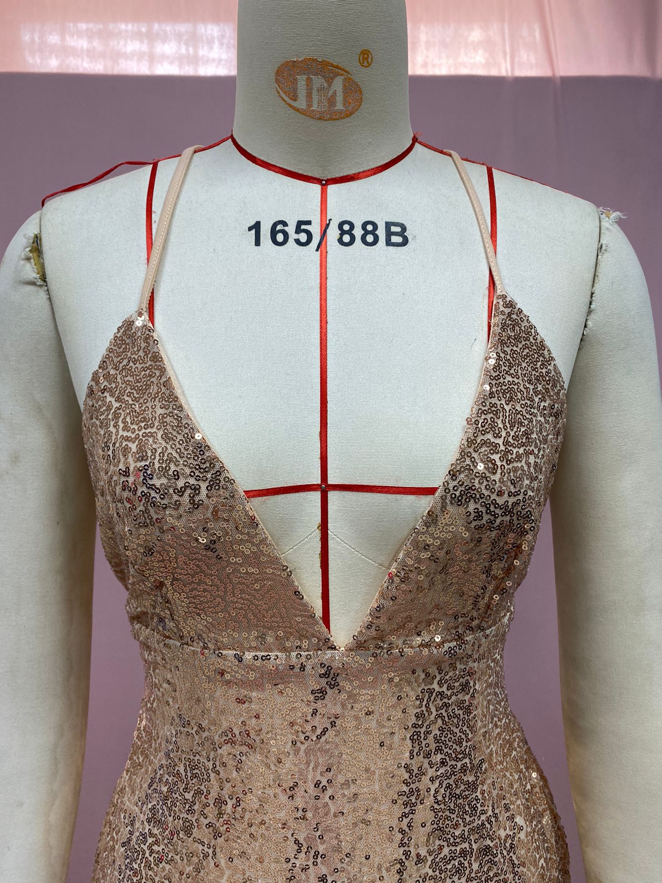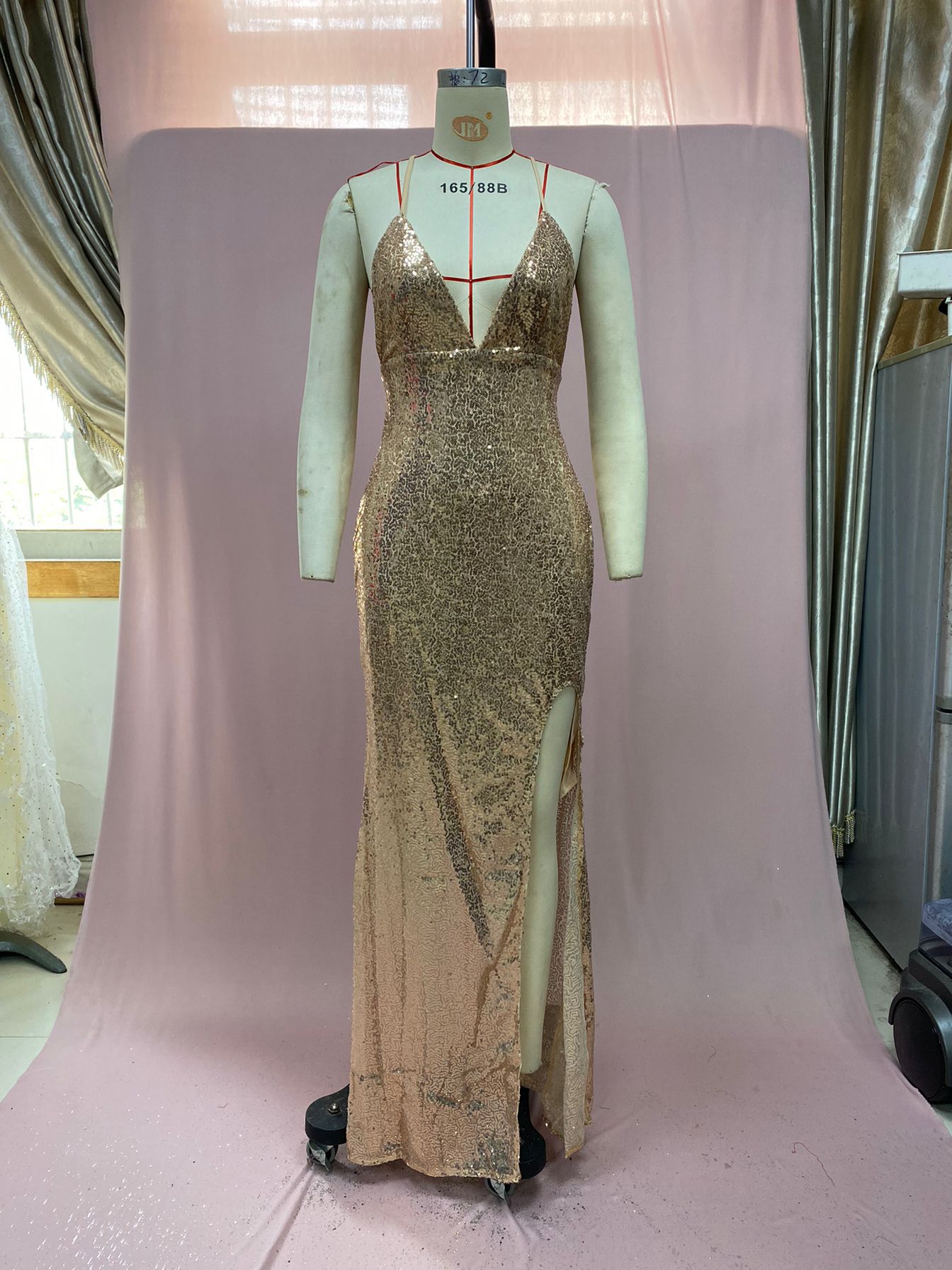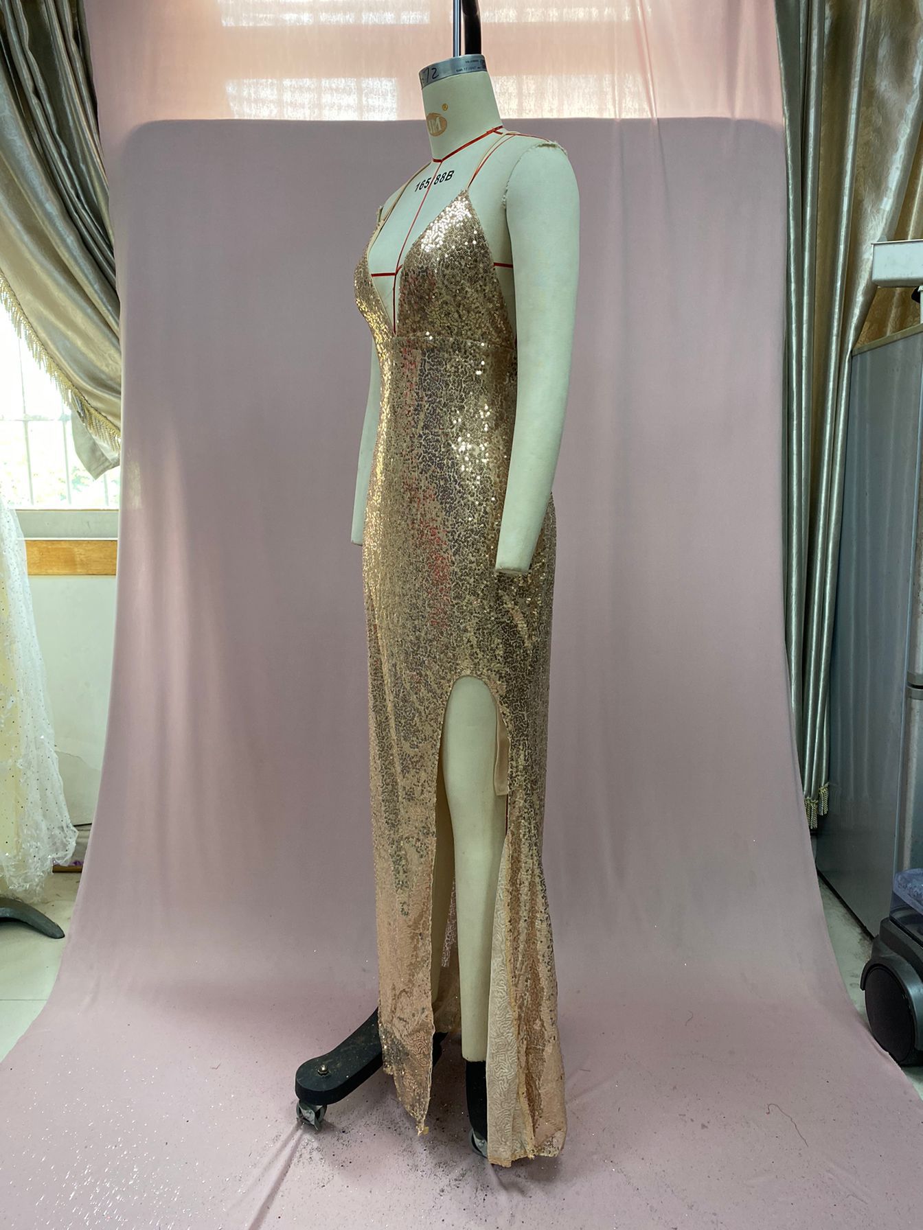 Women Dress Sexy Sequined Fishtail Slit Hip Spaghetti Straps Dress