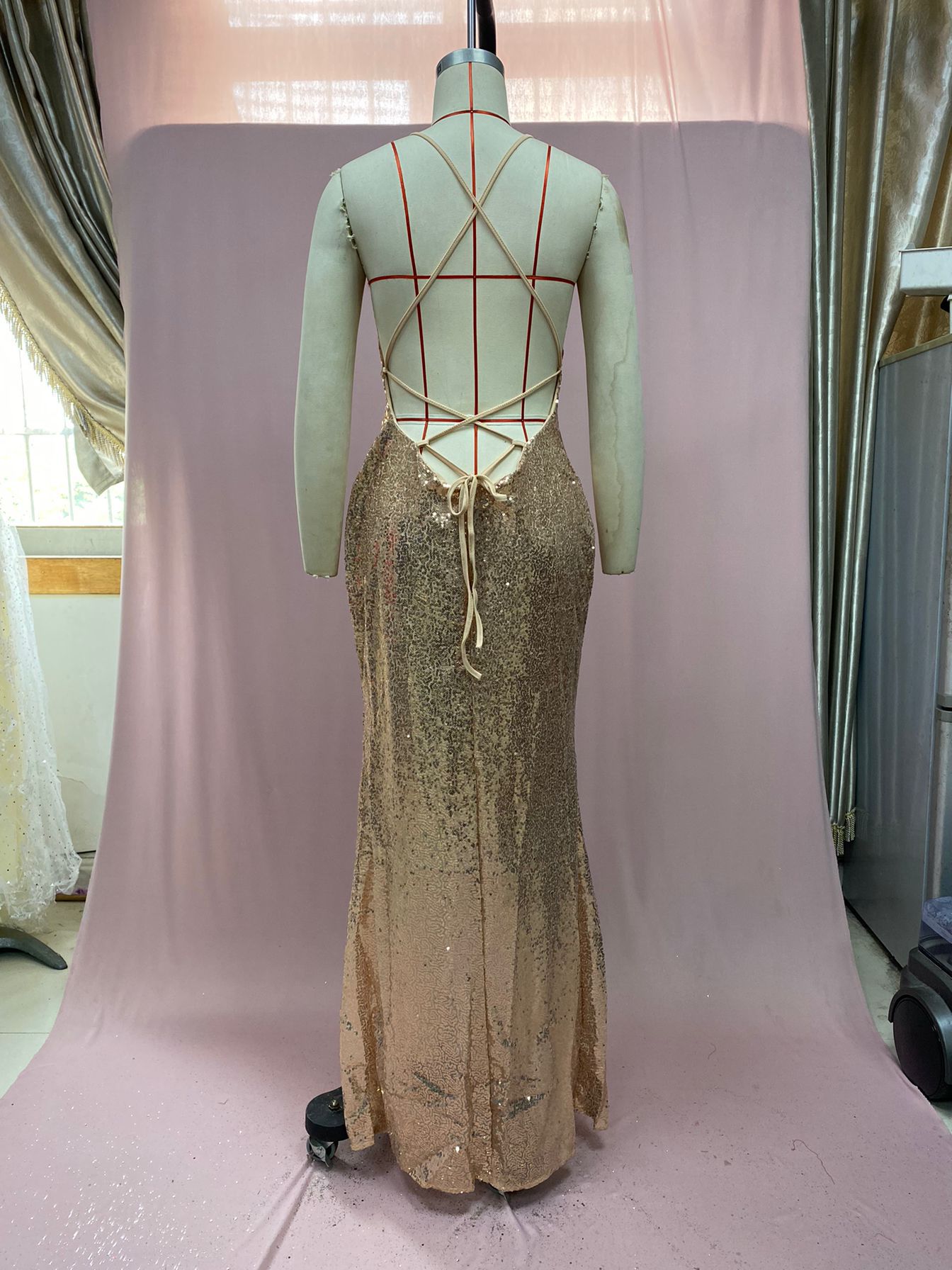 Element: Sequin,Asymmetric,Split,Lace up,Backless