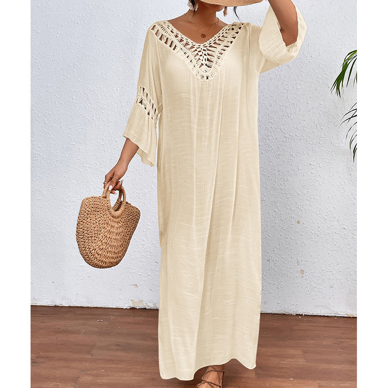 Women Hand Hook Stitching Colorful Ball Sexy Hollow Out Cutout Backless Loose Beach Long Cover Dress Crochet hook