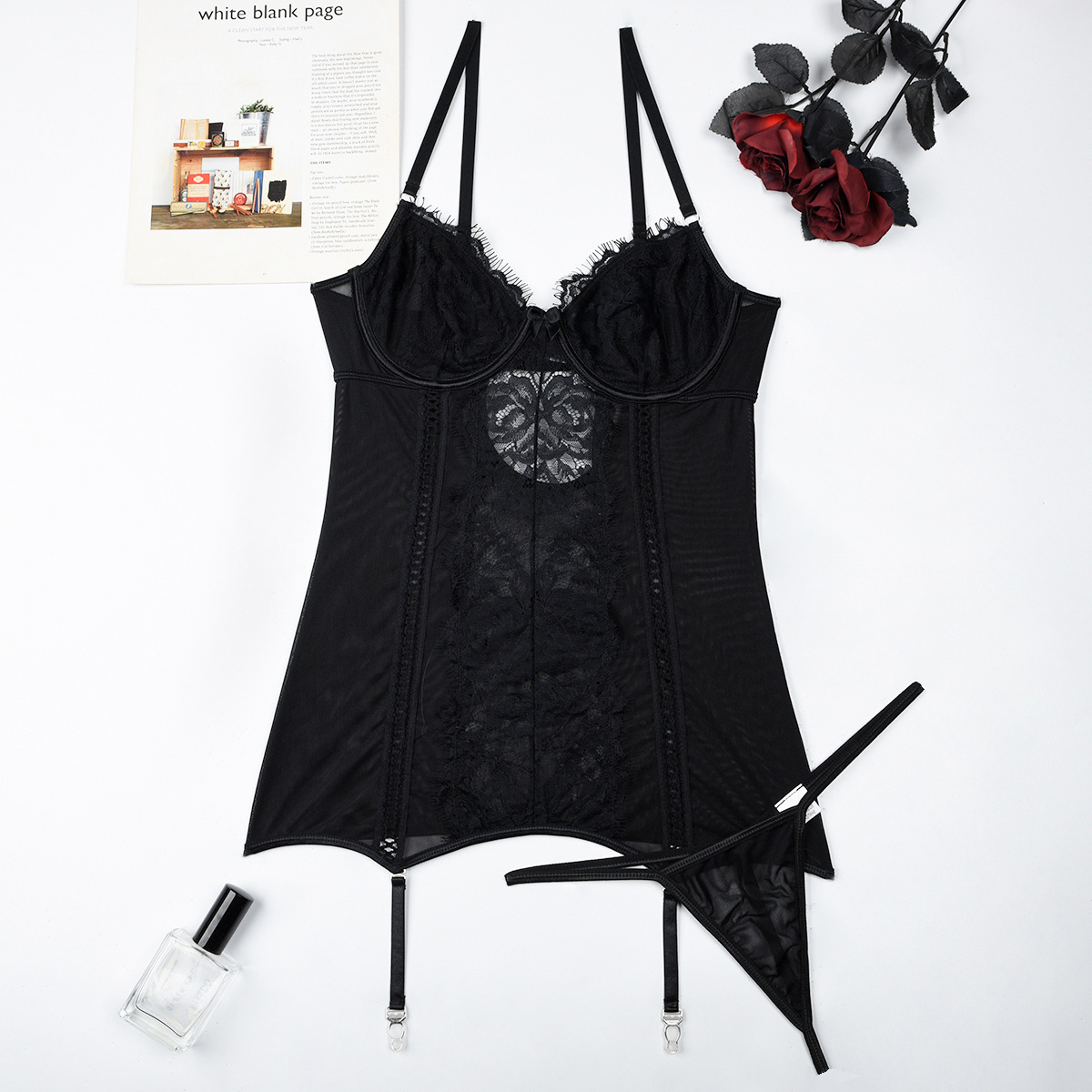 Women Lace Eyelash Stitched Backless Sexy Women T Back Set