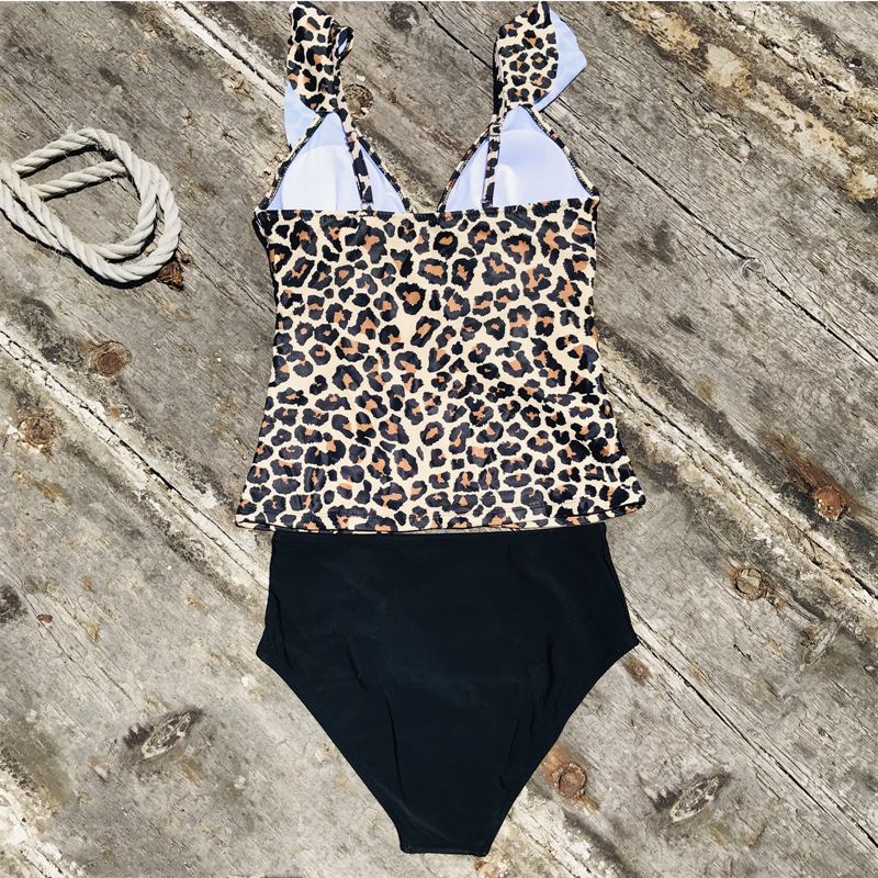 Women Leopard Print Ruffled Split Bikini Swimsuit Women Swimsuit Bikini