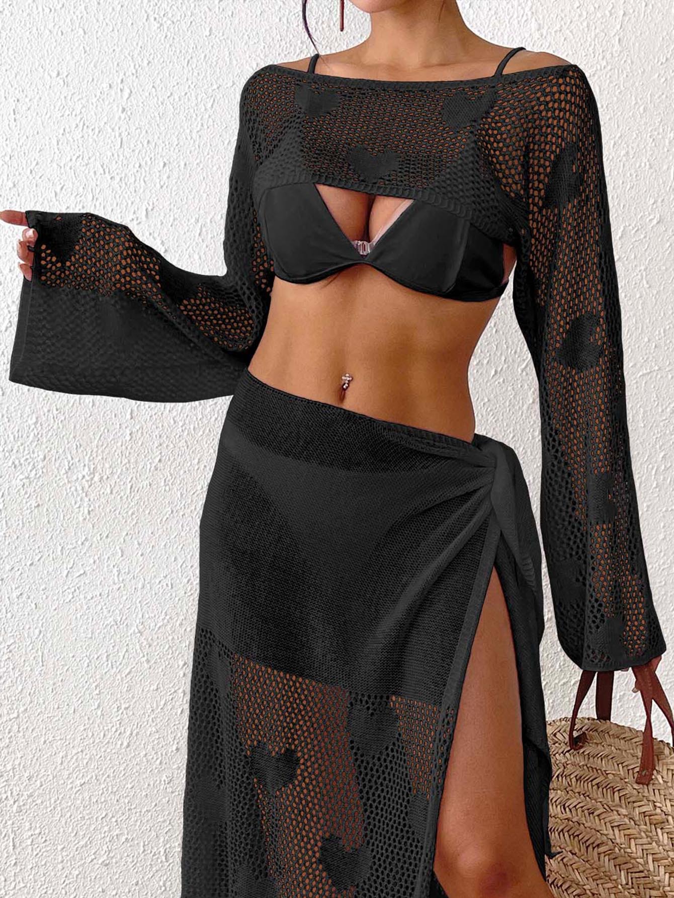 Women Love Jacquard Sexy Cutout Woven Blouse Beach Bikini Overclothes Short Top