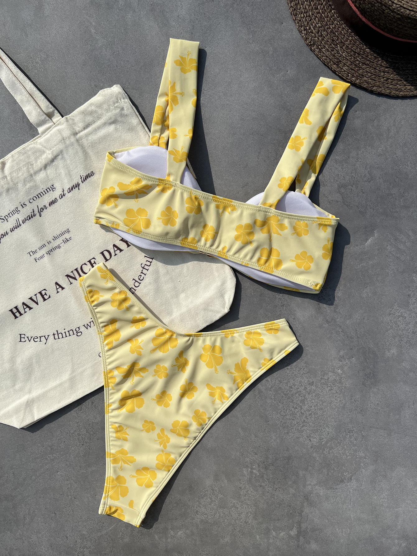 Women Printed Metal Floral Decoration Sweet Sexy Bikini Swimsuit