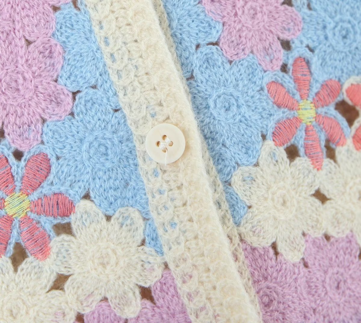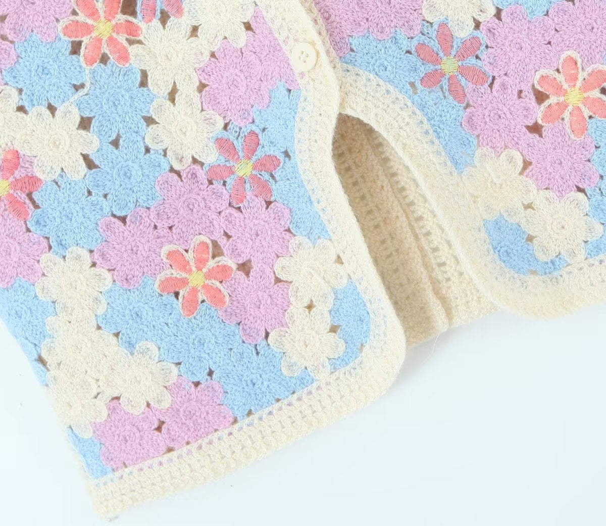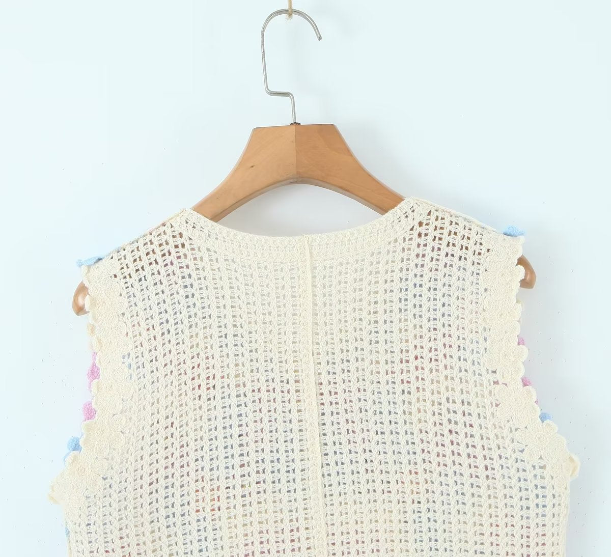 Women Retro Thailand Holiday Floral Vest Cardigan Top Casual All Matching Graceful