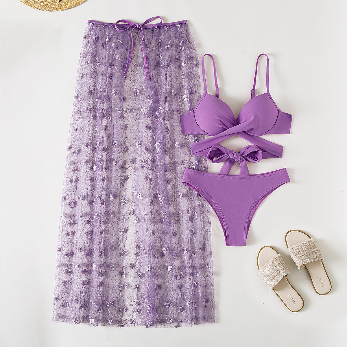 Women Swimsuit Split Steel Ring Bikini Bikini Three Pieces Swimsuit