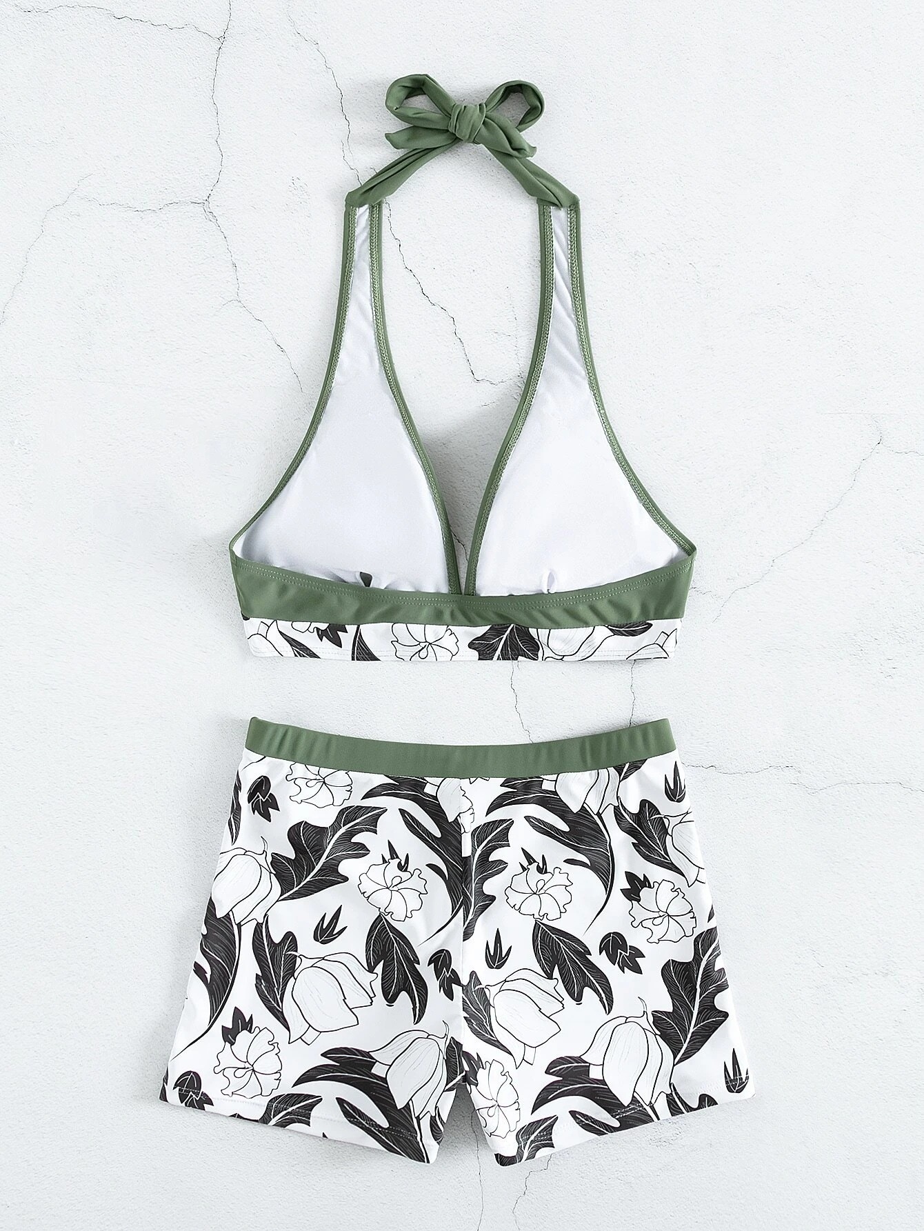 Women Swimsuit Women Split High Waist Boxer Lace Printing Solid Color Stitching Internet Celebrity Swimsuit